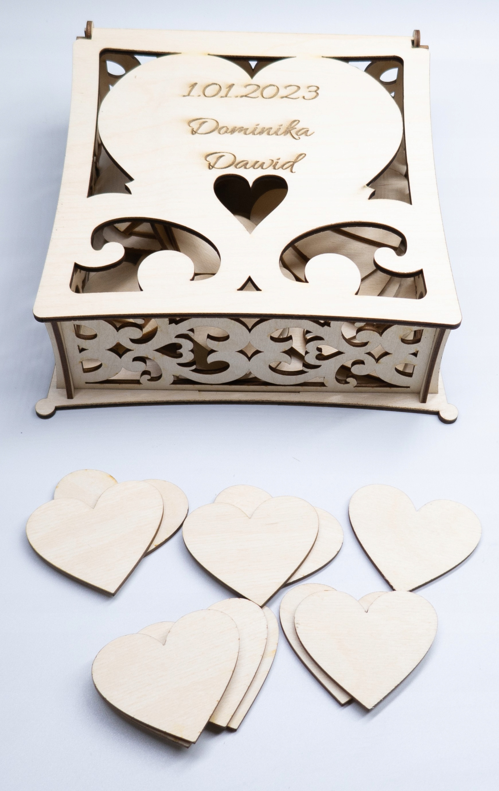 Кожен гість (або пара) бере серце, підписує своє ім’я та кладе серце в коробку.