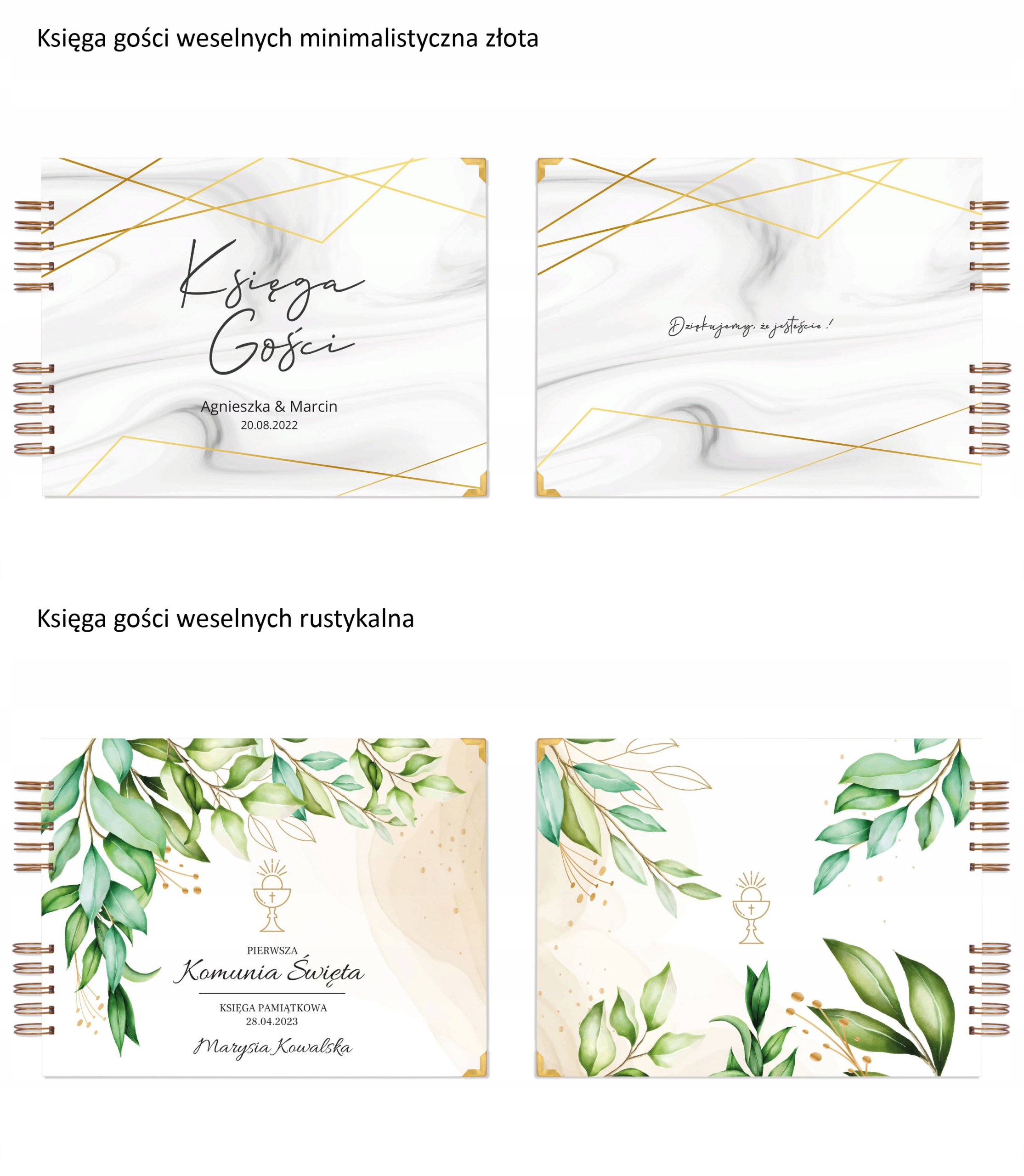 Спіральна гостьова книга в твердій обкладинці допоможе вам довше зберегти важливі моменти. Завдяки записам гостей, які супроводжують вас у цей особливий день, ви створите гарний сувенір на довгі роки. Окрім записів, у гостьову книгу можна також вклеїти фотографії з фотозони, зроблені гостями у смішних костюмах під час церемонії.
