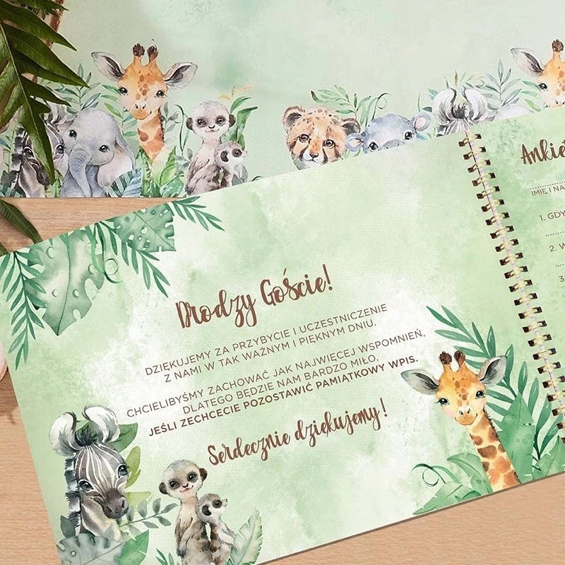Гостьова КНИГА для однорічної дитини з опитуваннями Safari Pets