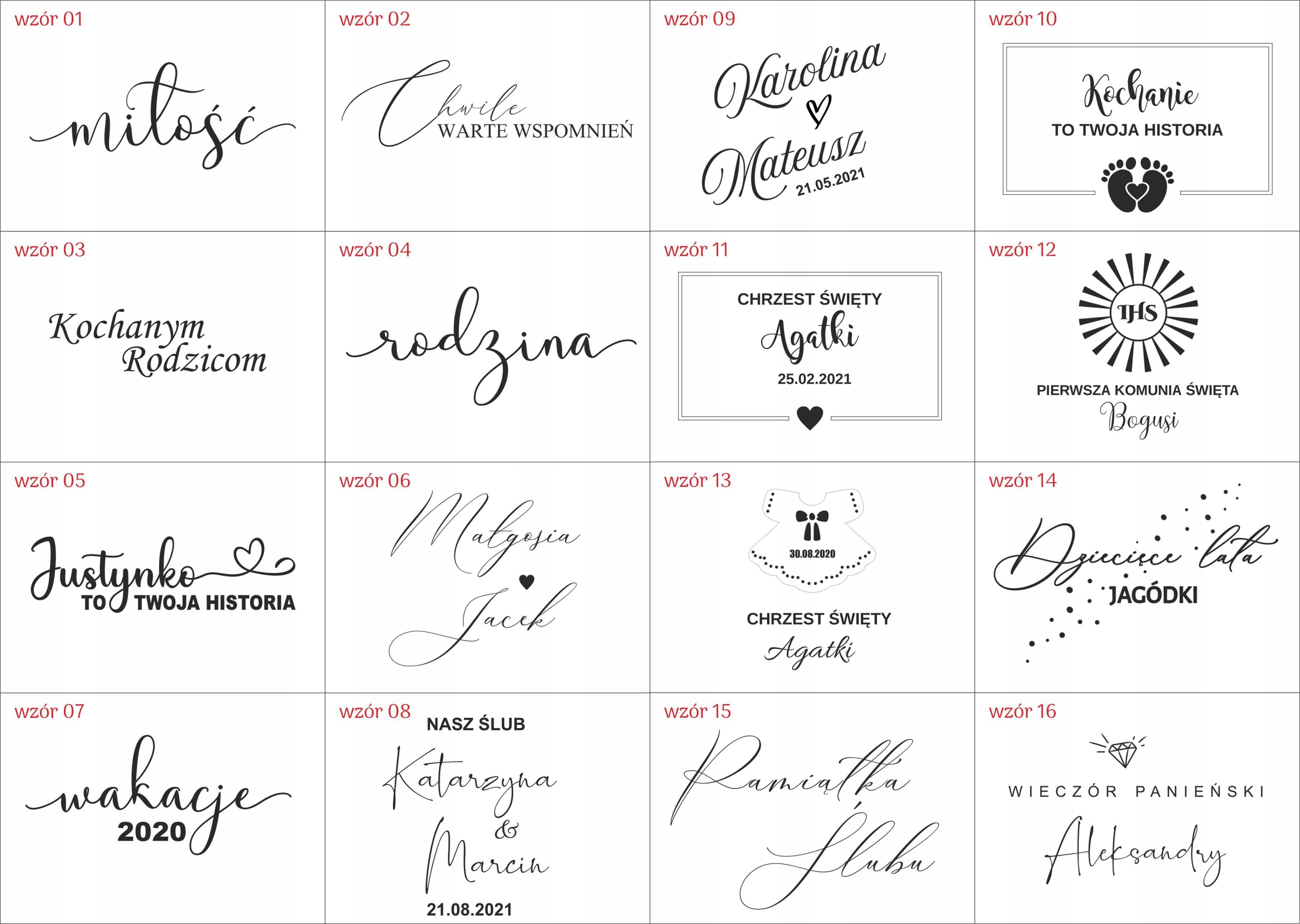 - Дані для персоналізації (наприклад, Marek, Kasia 25/06/2021)