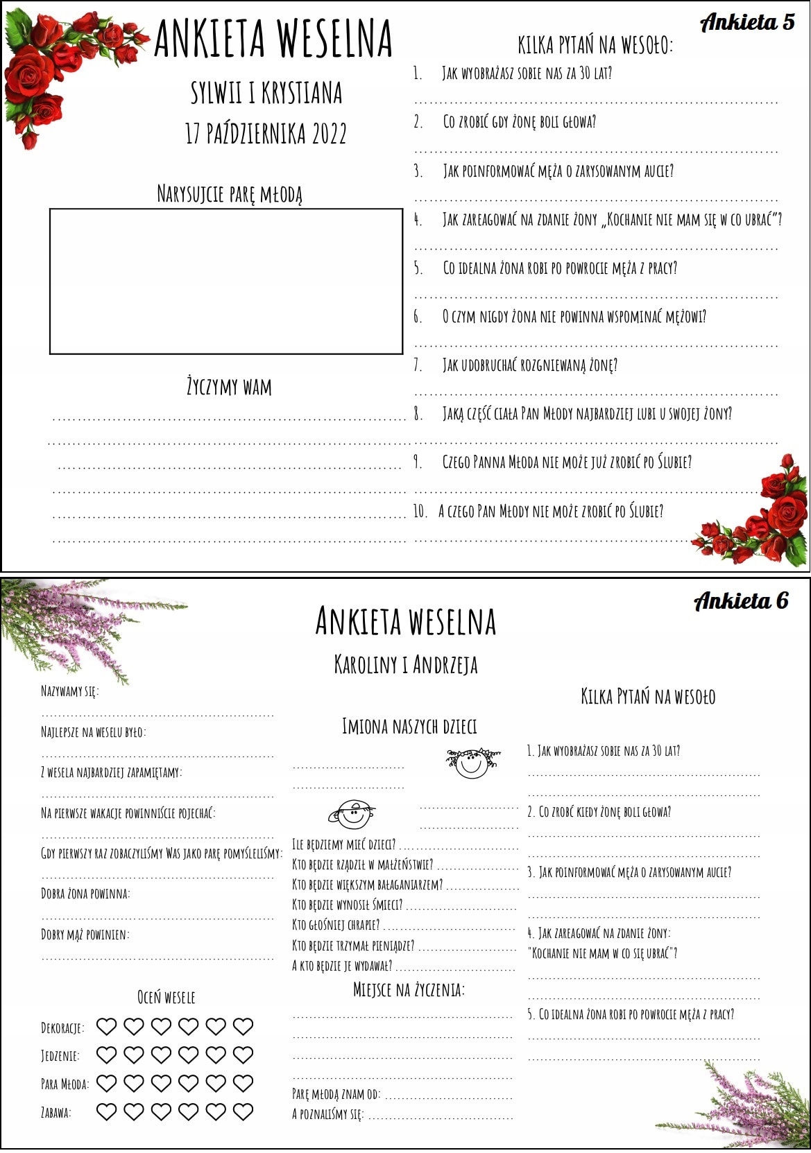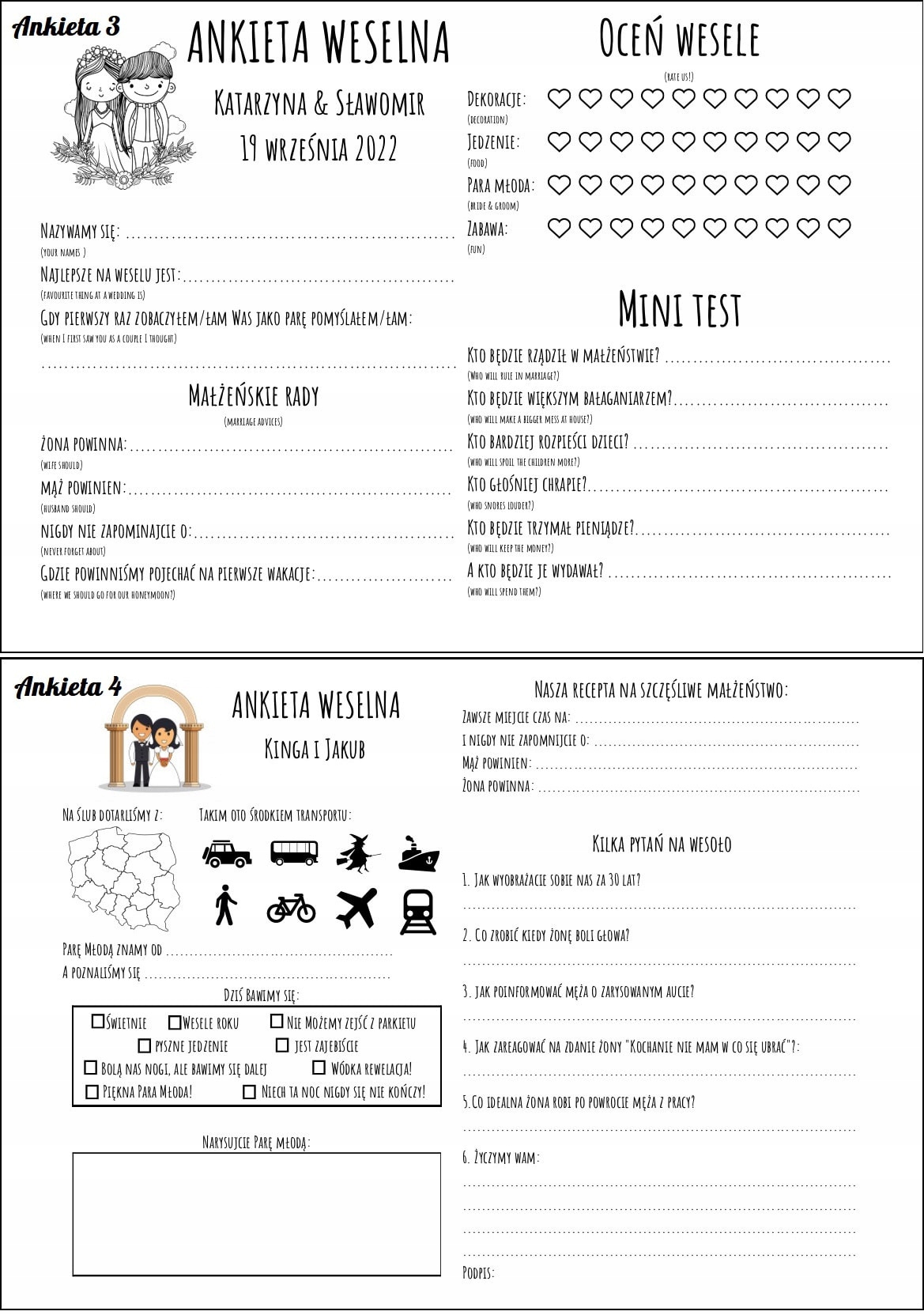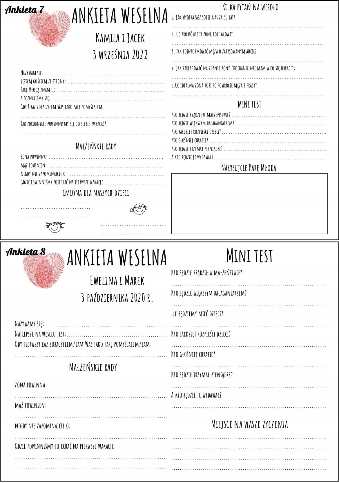 Весільна анкета стає все більш популярною пропозицією для весілля гостьова книга. Ваші близькі будуть заповнювати анкети з посмішками на обличчях, створюючи для вас чудовий сувенір.