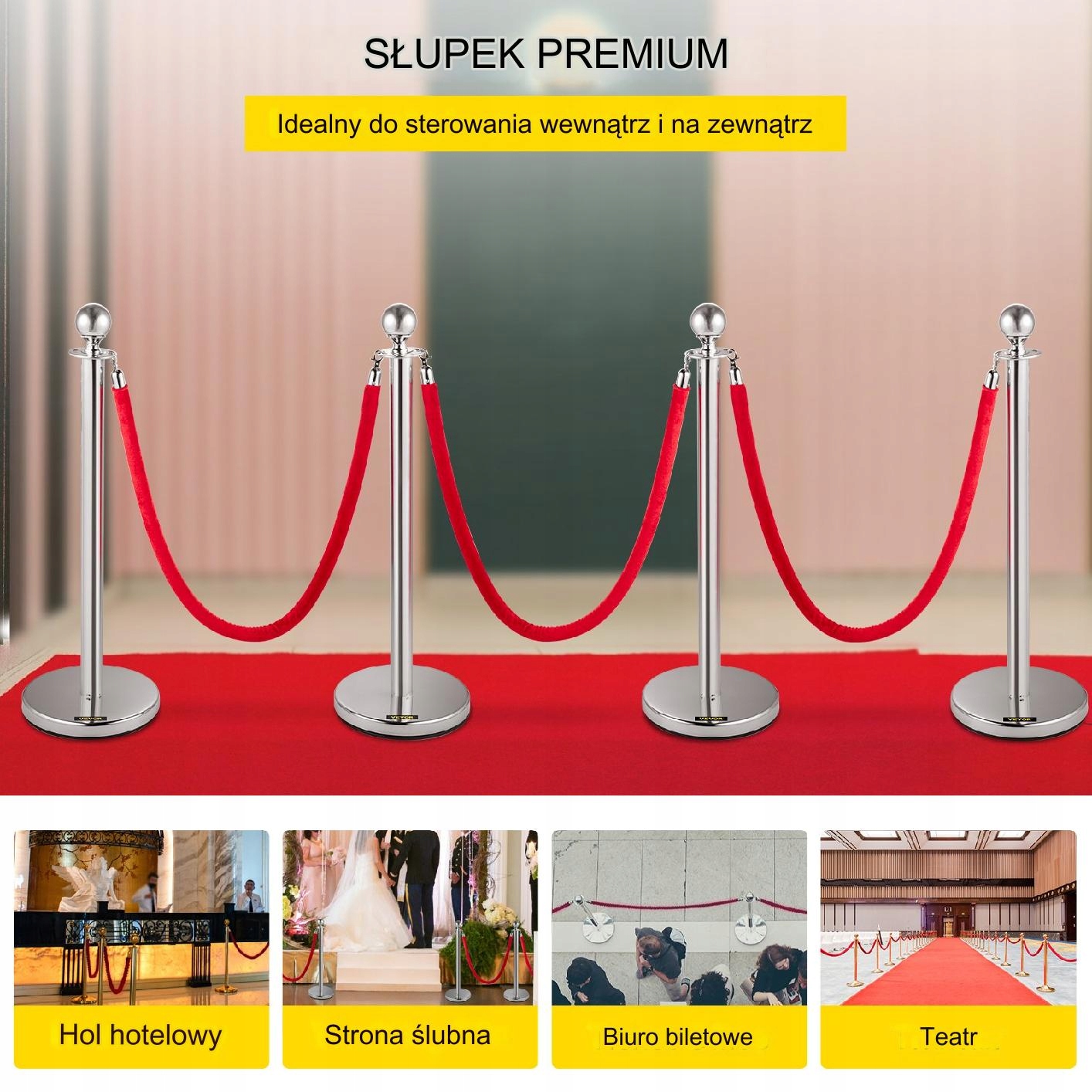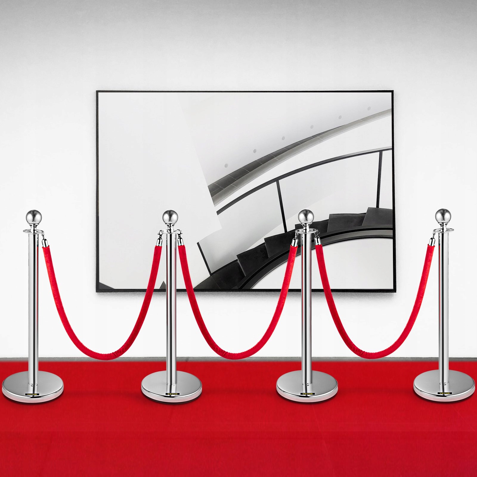 ГОТЕЛЬНІ БАР'ЄРНІ СТОЙКИ СРІБЛИСТІ 4 + 3 ЧЕРВОНІ МОТУЗКИ 1,5м