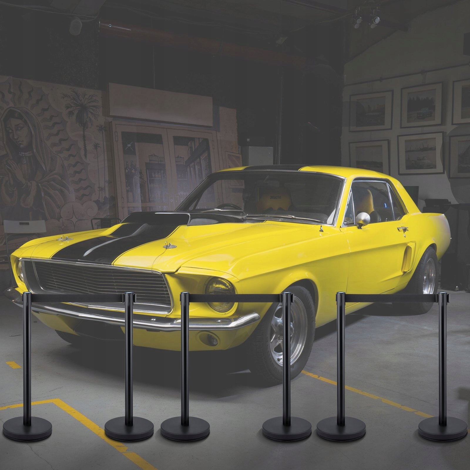 Набір із 6 стендів із двометровими чорними стрічками дозволяє ефективно керувати рухом і організувати простір. Ідеально підходить для невеликих приміщень і заходів, які потребують функціонального керування натовпом. Вони підходять для офісів, магазинів і невеликих заходів.