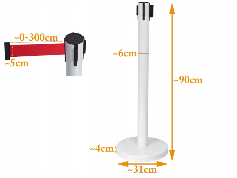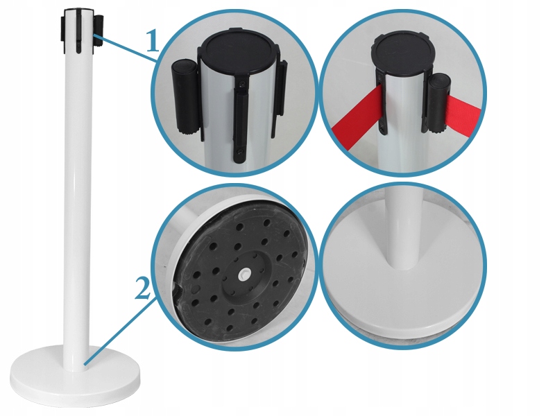 Надійне виготовлення стовпа та основа з міцної та естетичної сталі роблять його надзвичайно вражаючим. Основа вагою близько 5 кг забезпечує високу стабільністьі захищає від випадкового перекидання одного стовпа або всієї лінії.