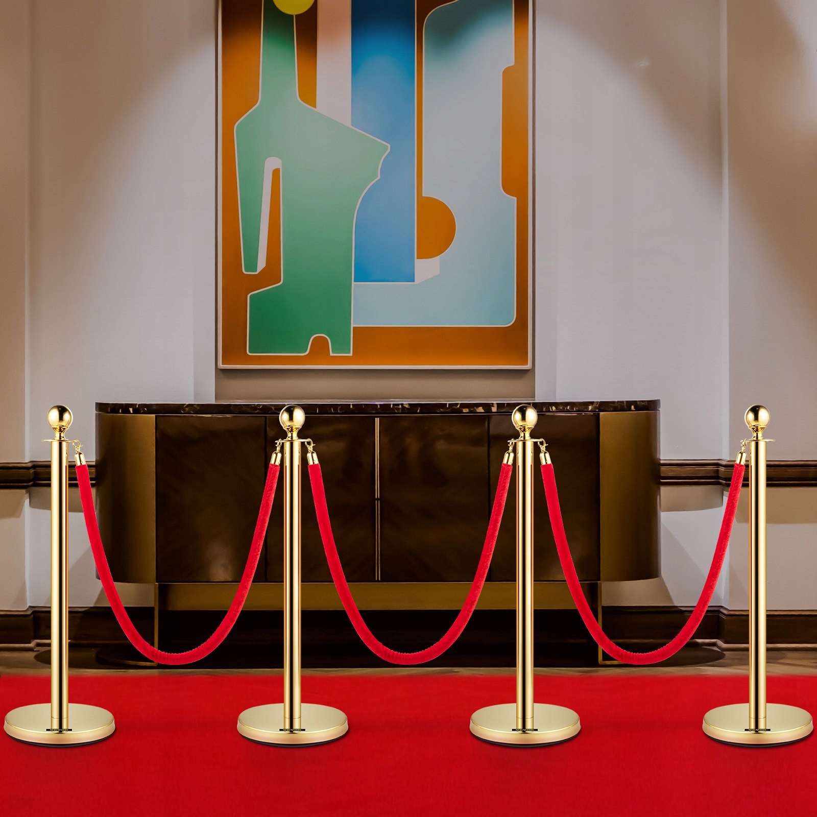 БАР'ЄРНІ СТОЙКИ ДЛЯ ГОТЕЛІВ ЗОЛОТІ 4 + 3 ЧЕРВОНІ МОТУЗКИ 1,5 м
