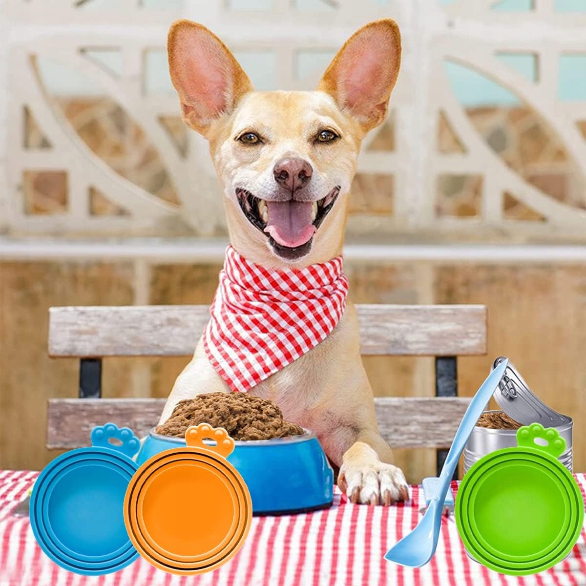 У наборі ви отримуєте 3 силіконові кришки в різних кольорах та практична ложка. Кришки ідеально підходять для повсякденного використання і дозволяють щільно закривати банки з їжею, захищати їжу від висихання та забезпечення свіжості та здоров'я їжі вашого вихованця.