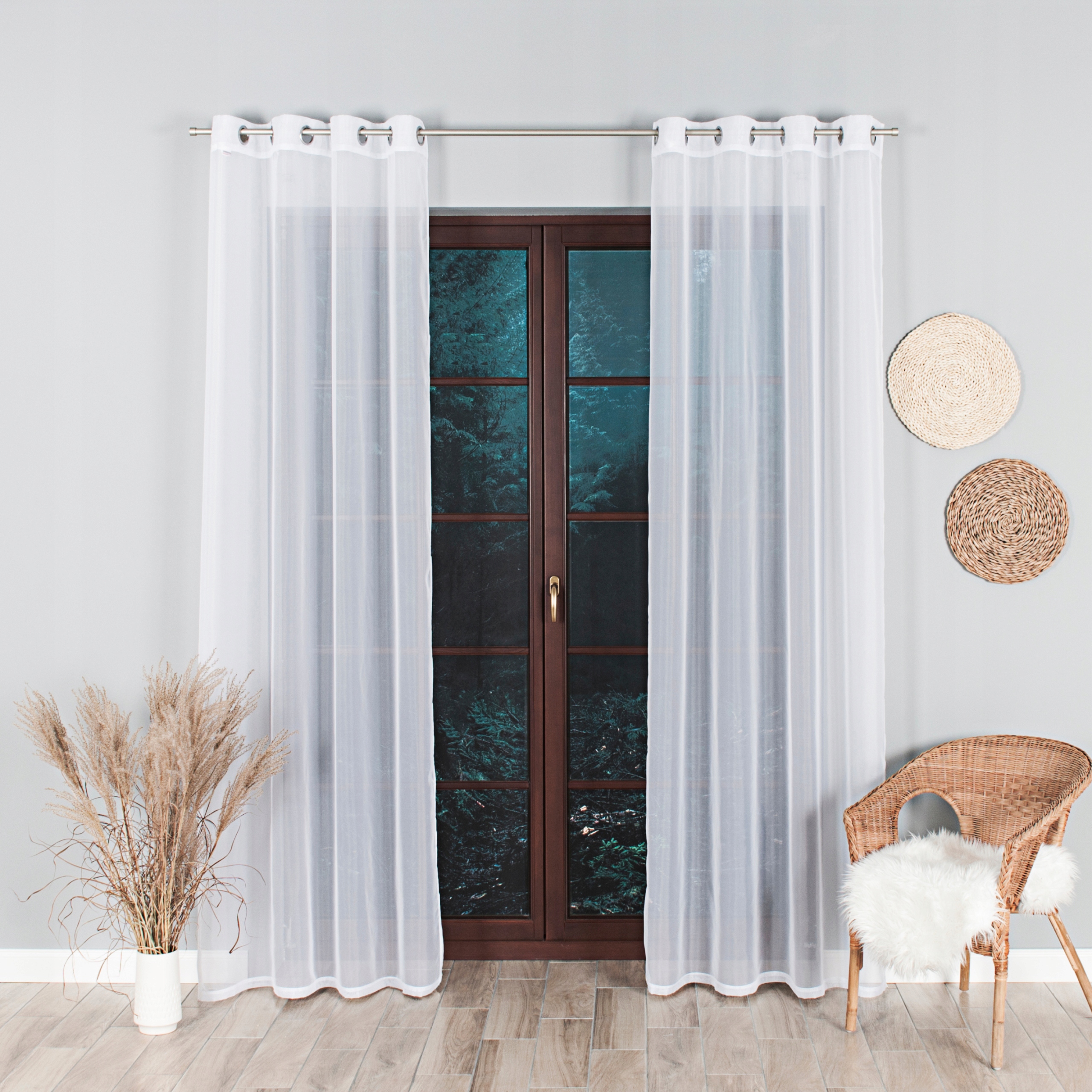 Якщо ви любитель класики в поєднанні з елегантністю, ця штора ідеально підійде для створення оригінального віконного оформлення. Завіса готова з сріблястими люверсами, обробленими смужкою, виготовленою з тонкоївуалібілого кольору. Універсальний колір і Пряма обробка - це гарантія прикраси, яка ніколи не набридне і залишиться з вами на довгі роки. Ніжна вуаль характеризується м'якістю і хорошою світлопроникністю. Цей незмінний елемент дизайну підійде буквально до будь-якого інтер'єру, додавши йому нотку елегантності.
