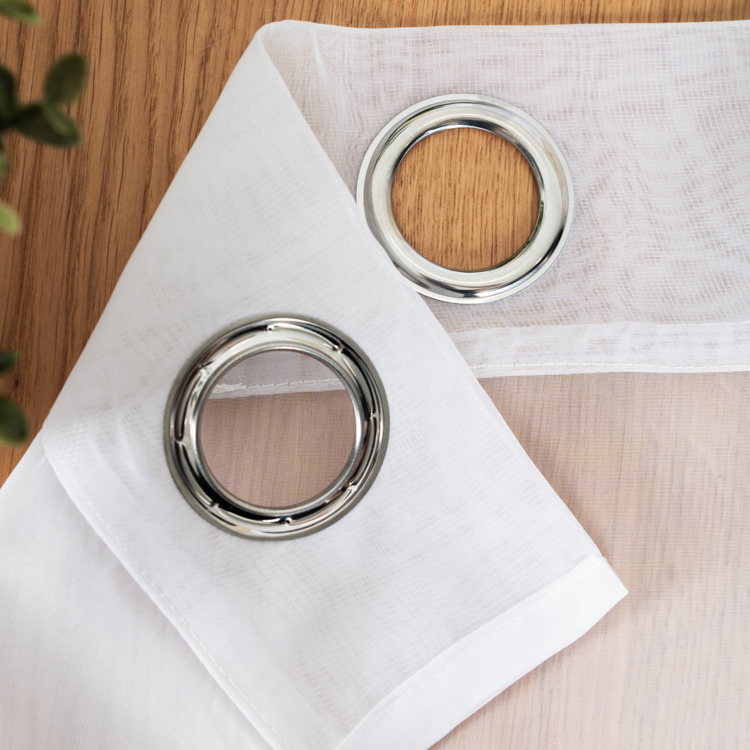 Біла штора з вуалі з сріблястими люверсами 140х250 см