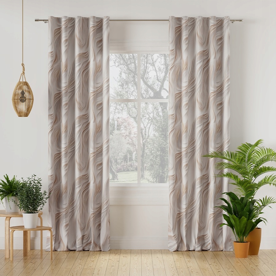 ГОТОВА ШТОРА ДЛЯ СПАЛЬНІ БЕЖЕВА НА ВКАРАМЕЛАВОВІЙ СТРІЧЦІ 140х250