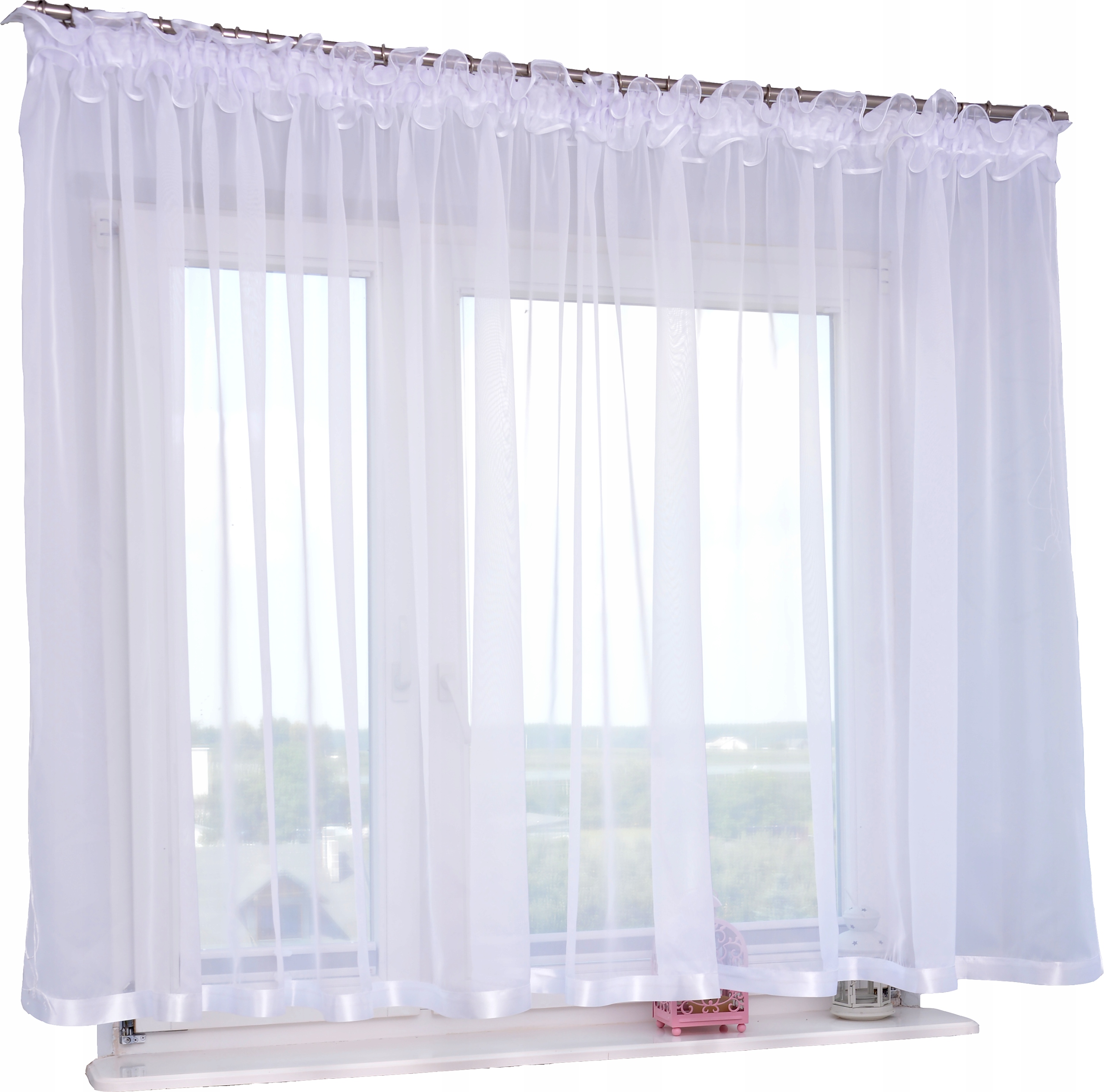 Красива готова -вироблена завіса, виготовлена з високоякісної білої вуаль.