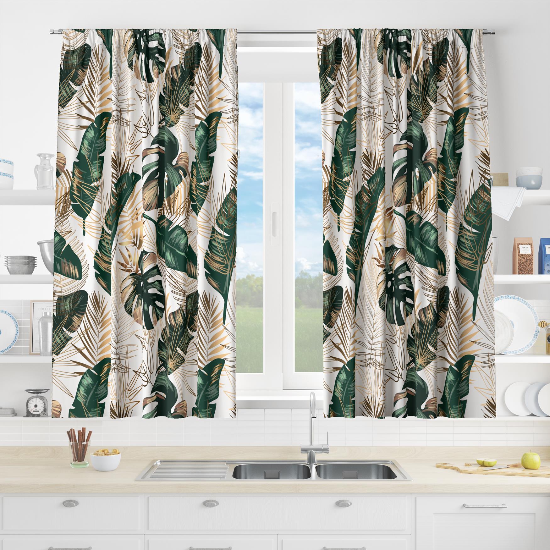 Готові короткі штори для жаб 140x160 Листя кухонної штори 050