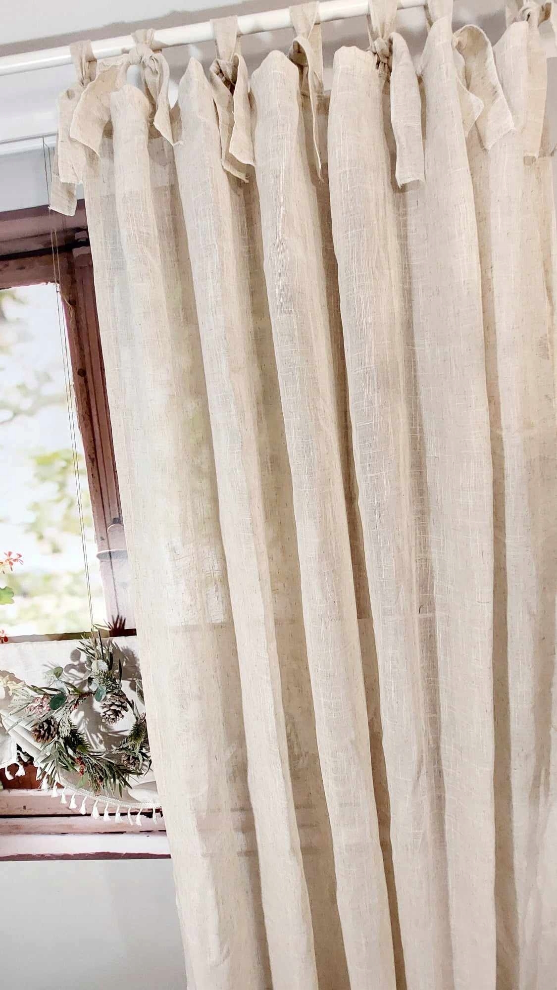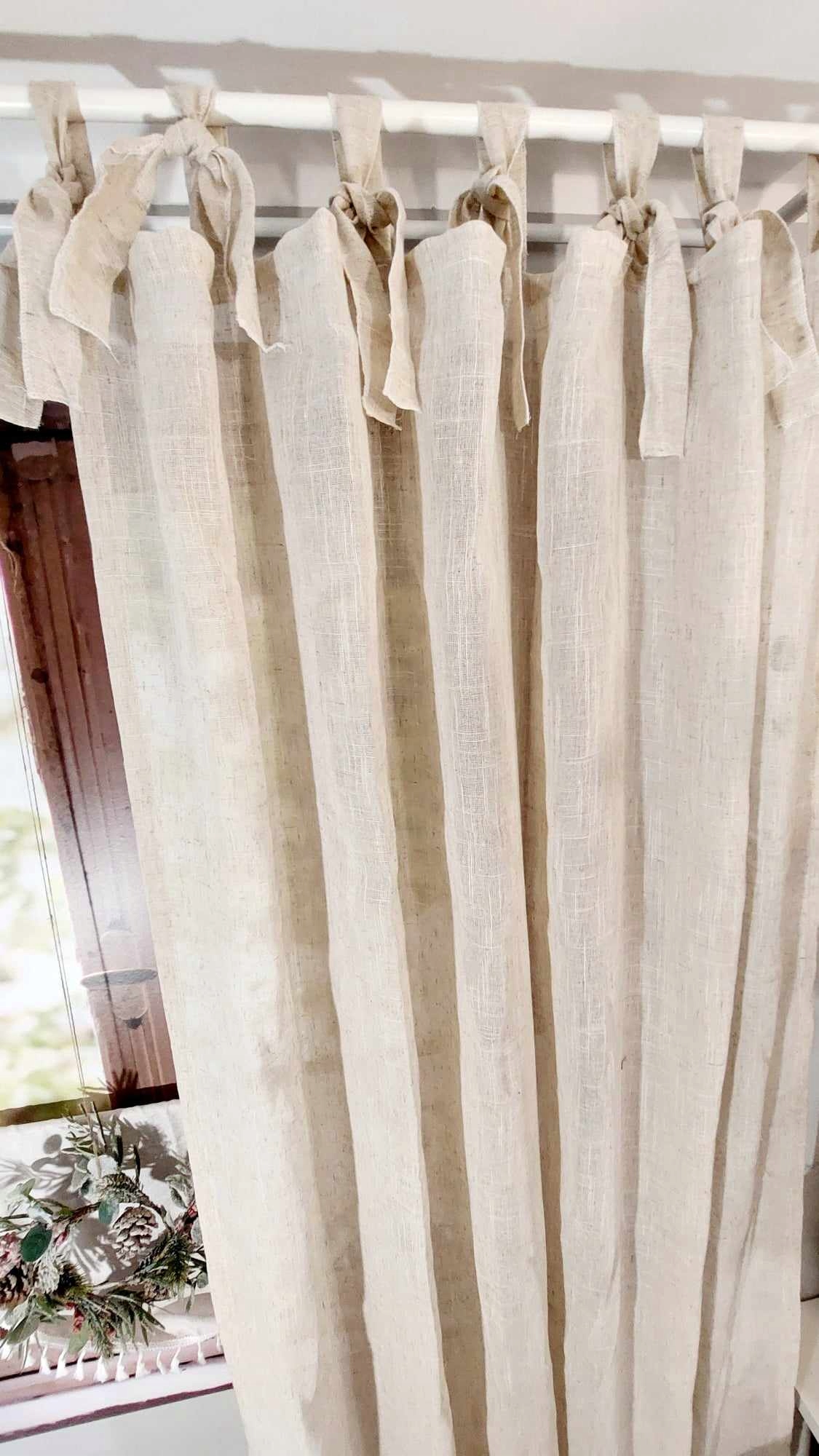 Готові лляні штори бохо на лямках панель для вітальні 150/220 см