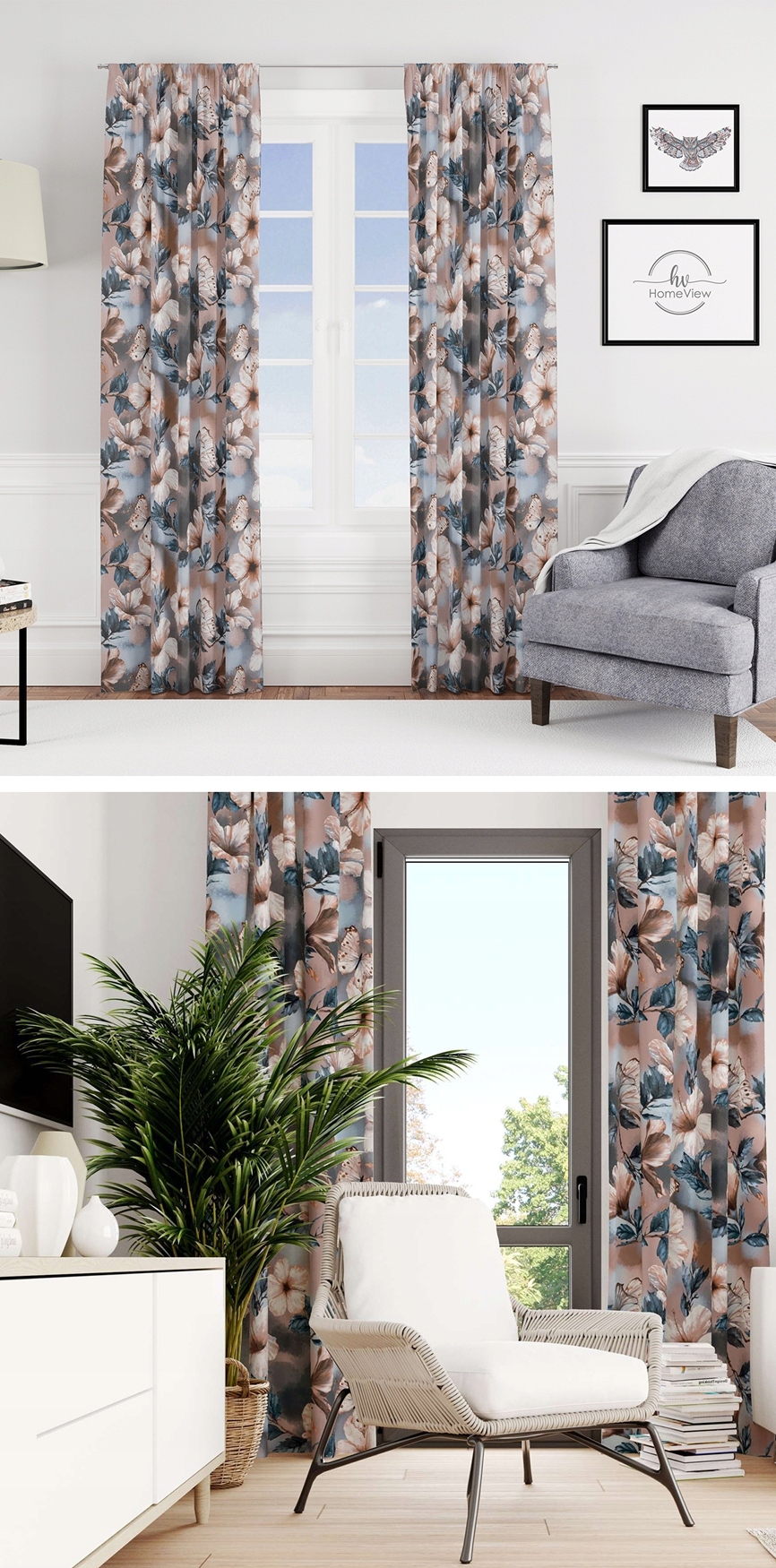 Готові штори для жаб зі стрічкою 140x250 штор квіти 017 Скорочення безкоштовно