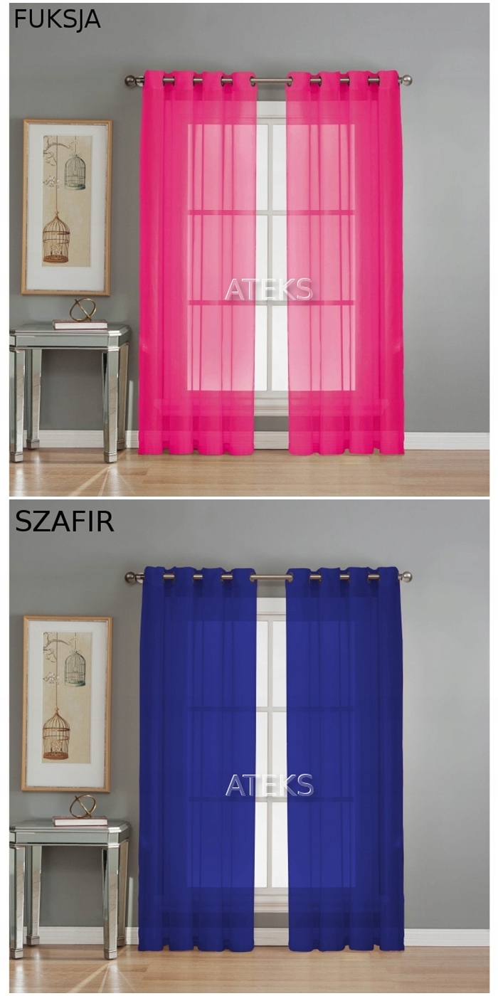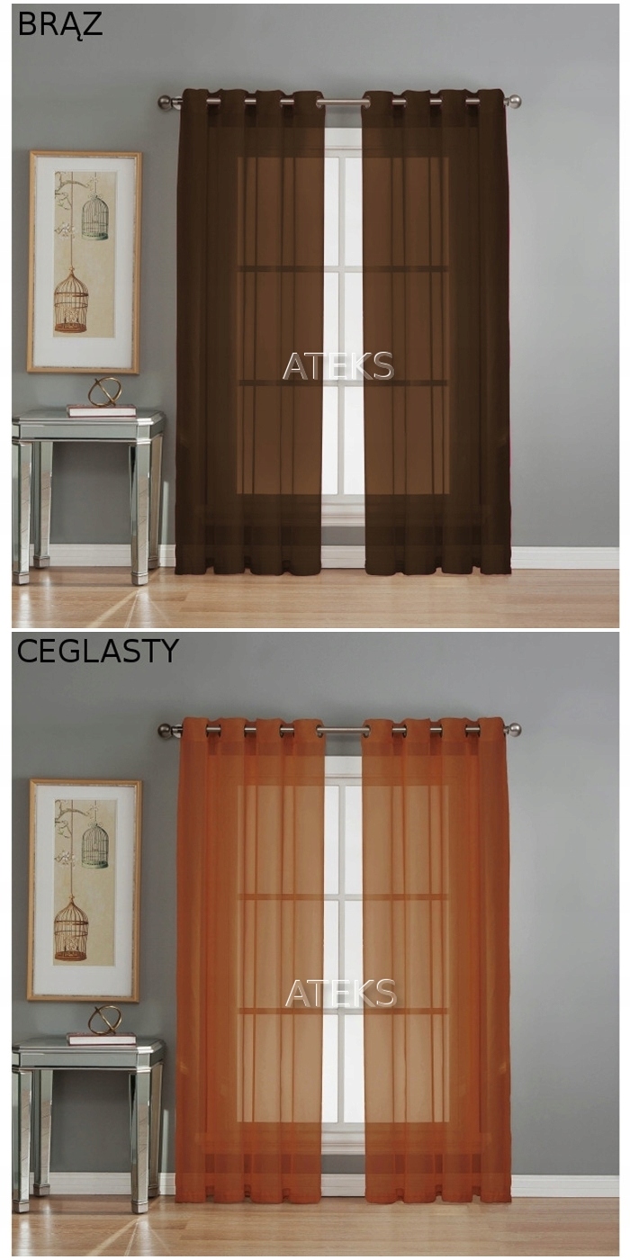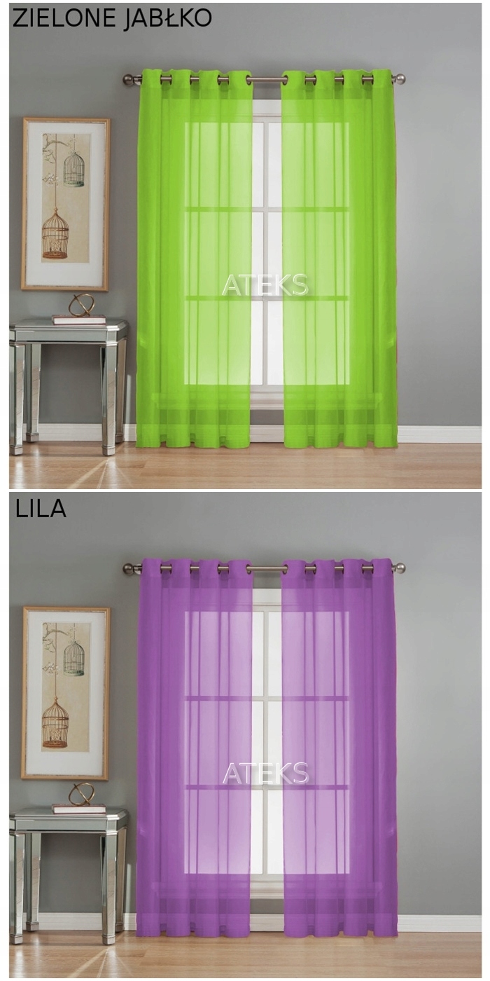 Готова штора з гладкої вуалі, металева, сріблясті люверси . Декоративна штора має зверху вшиту стрічку жорсткості з вставленими в неї люверсами. Напівпрозора декоративна штора, найчастіше використовується як легка, повітряна, ніжна штора, яка доповнює весь віконний комплекс.