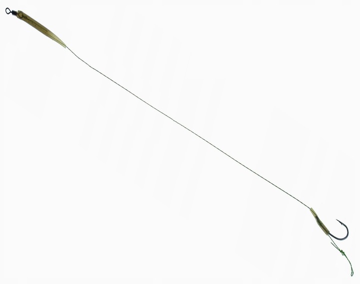 дуже міцні гачки, пов'язані безвузловим вузлом. На кінці кожного лідера є вертлюг стовбура, захищений спеціальним силіконовим чохлом для захисту від стирання та пошкоджень. У комплект також входять стопори для захисту приманки на волосині від падіння.
