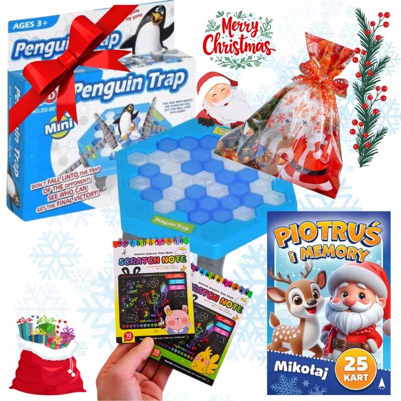 Gotowa PACZKA ŚWIĄTECZNA NA MIKOŁAJA PREZENT GRA PINGWIN ZDRAPKA KARTY L34