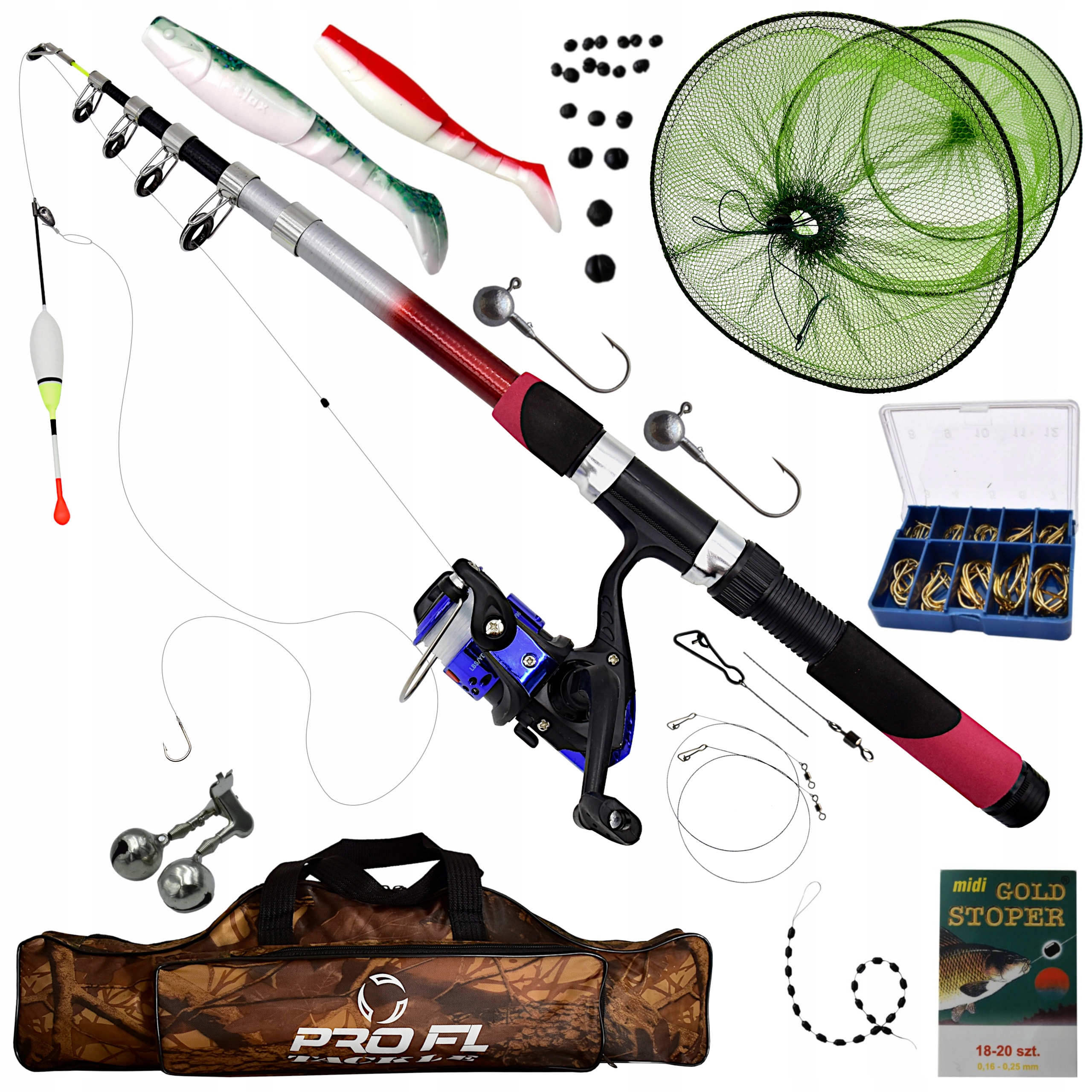 GOTOWY Uzbrojony Zestaw Wędkarski nad wodę siatka przynęty haczyki stopery