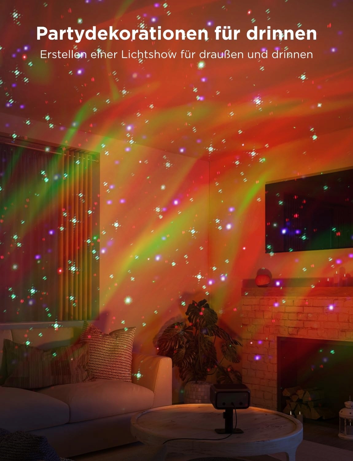 - Легке шоу зовні: Проектор Govee Aurora Nordlicht містить конструкції 16 × 16 × 16 RGB, які ідеально підходять на фестивалі. Використовуйте 3-кольоровий рухомовий лазер, щоб насолодитися понад 50 режимами сцен, використовуючи домашній додаток Govee та створити мальовничий відпочинок для різних випадків.