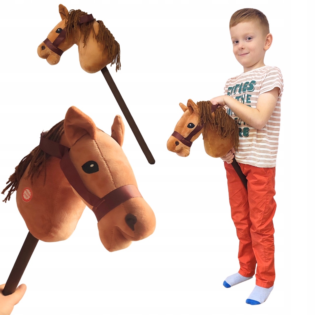 GŁOWA KONIA HOBBY HORSE KOŃ KONIK NA KIJU PLUSZOWY Z DŹWIĘKIEM 70cm BRĄZOWY