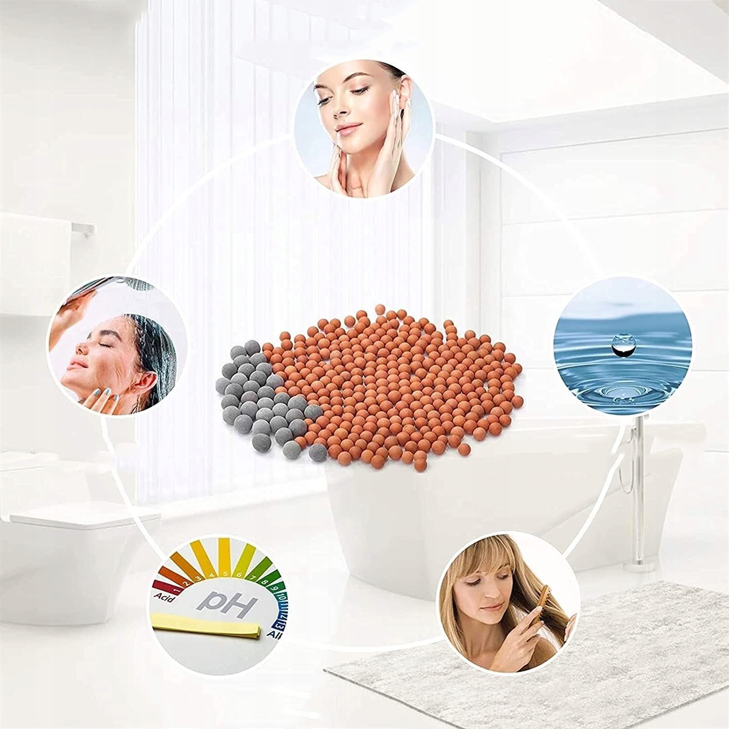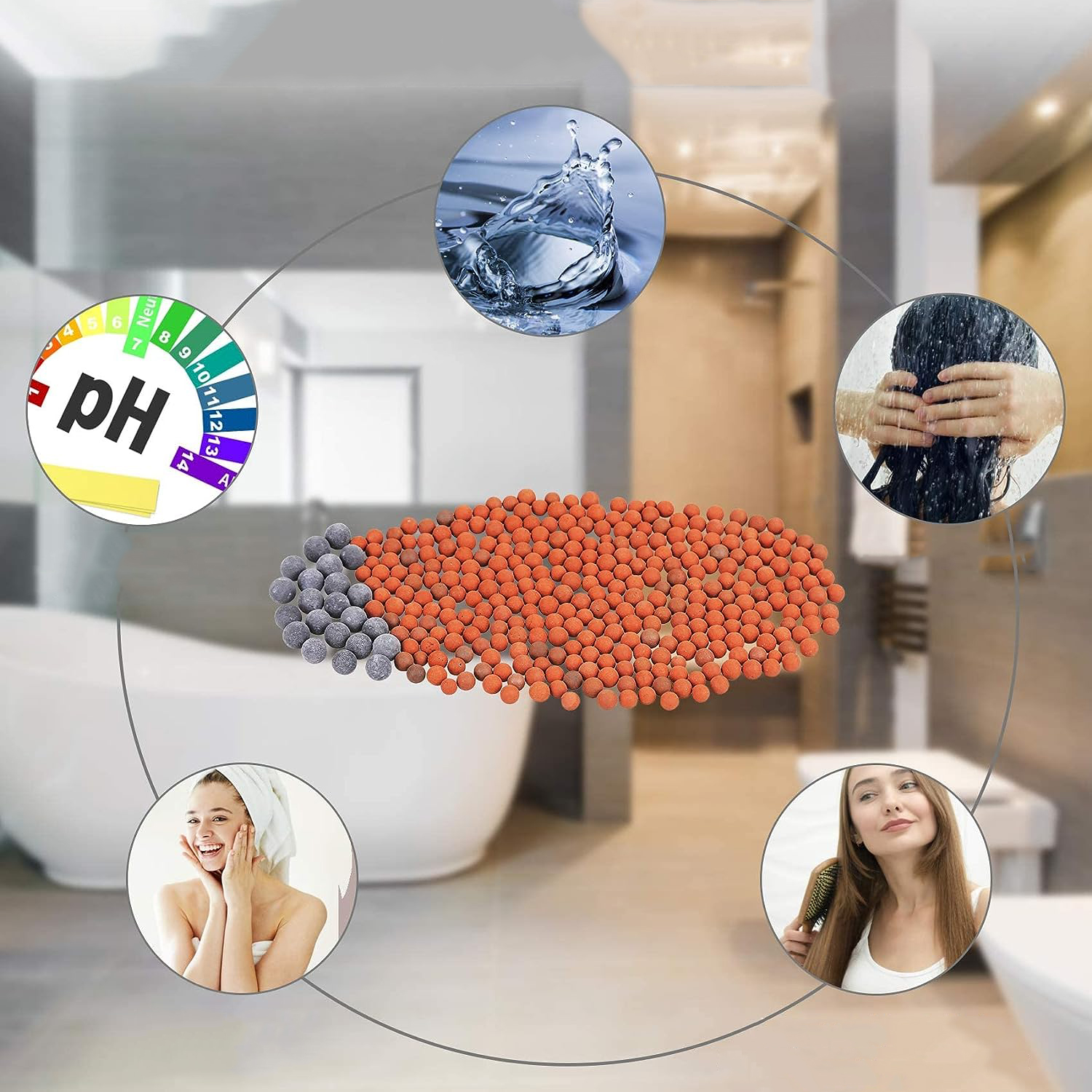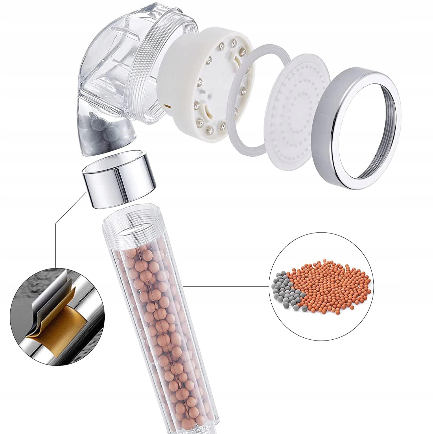 🚿🚿 Потужна фільтрація: негатив іонний фільтр очищає воду. Вбудована фільтрація негативних іонів з мінеральних перлин видаляє важкі метали, хлор, бактерії, борошно та забруднення, покращуючи якість води.