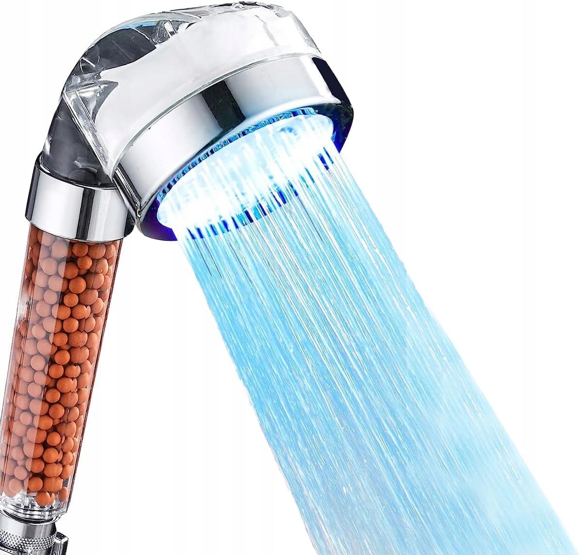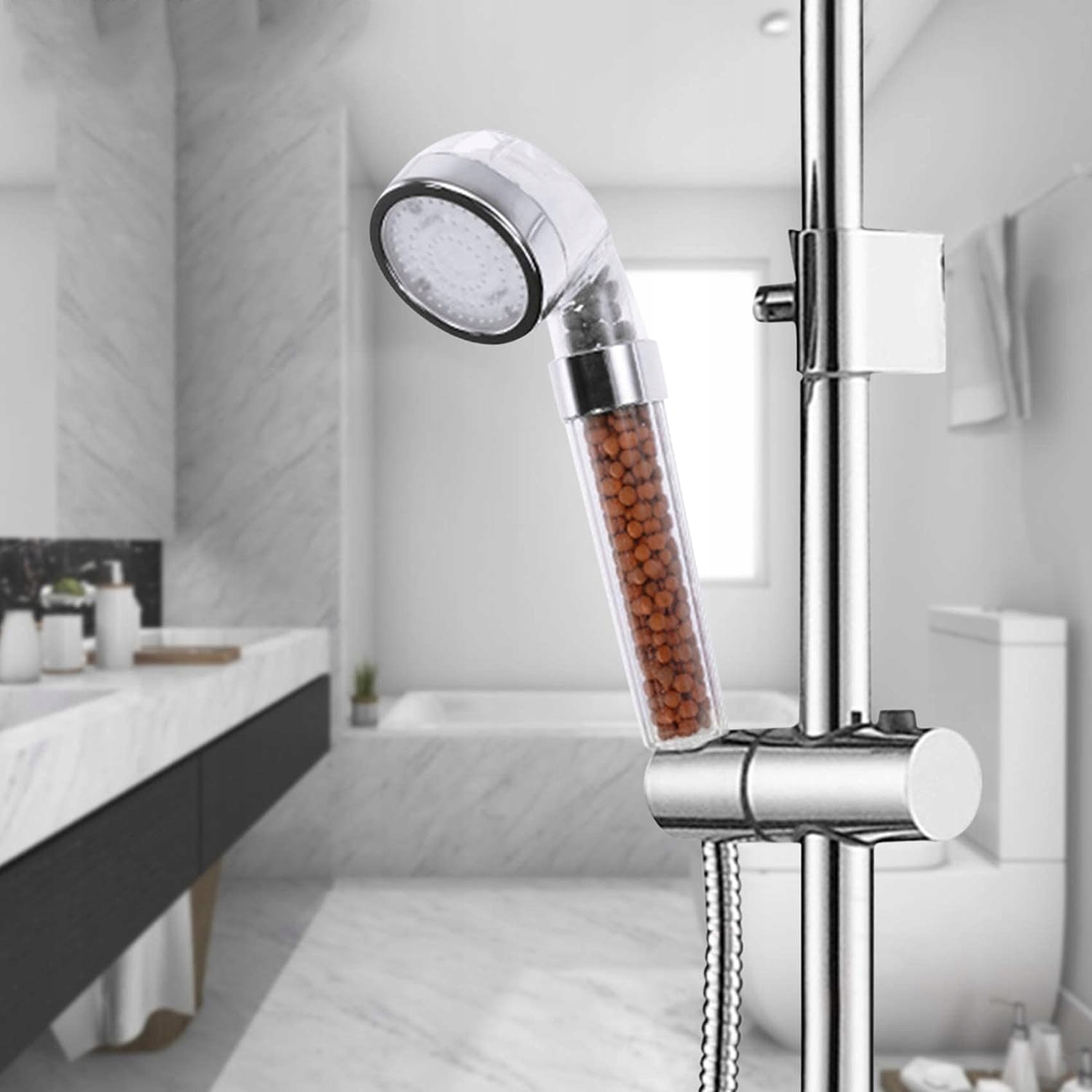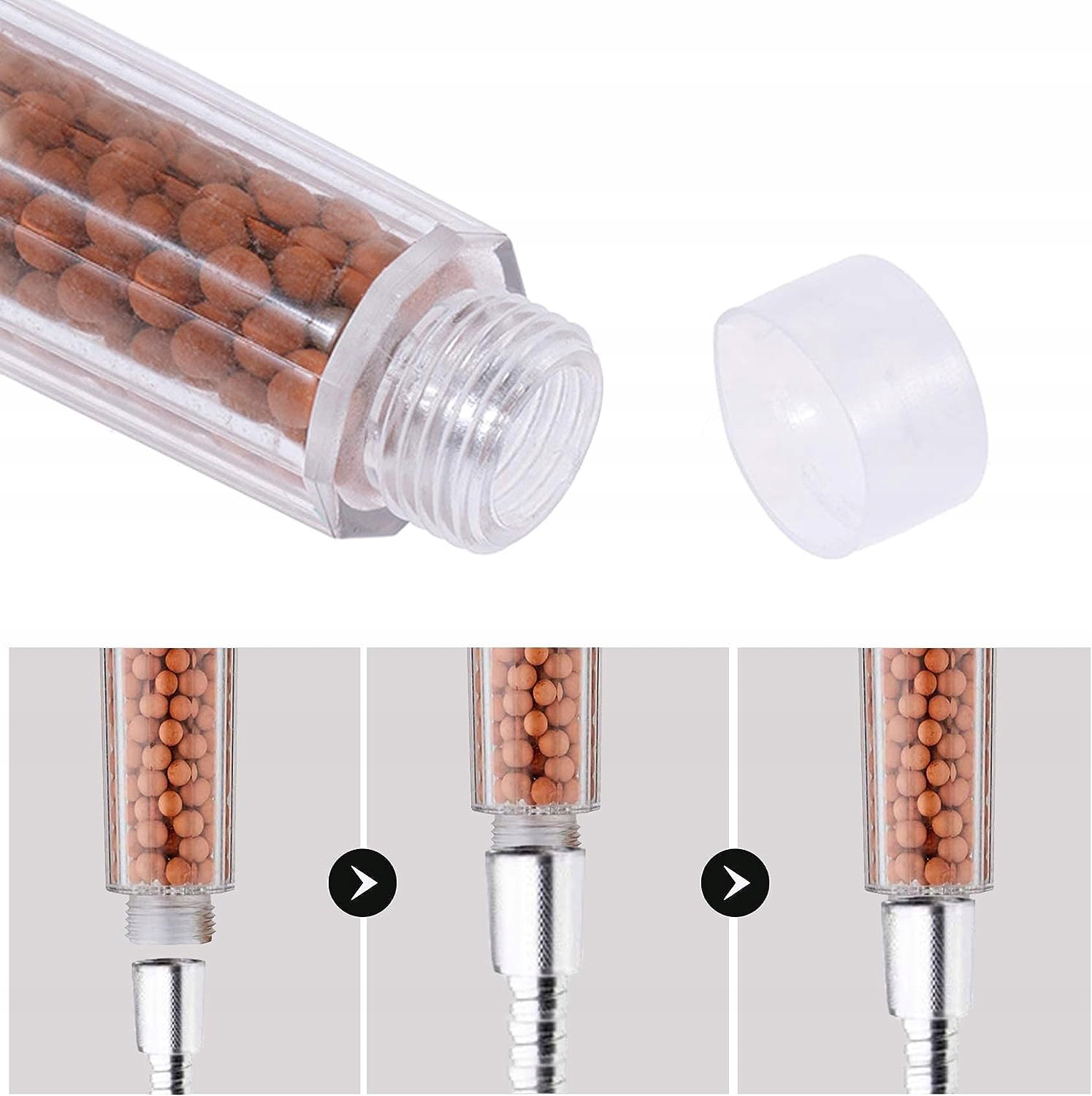 🚿🚿 Потужна фільтрація: негатив іонний фільтр очищає воду. Вбудована фільтрація негативних іонів з мінеральних перлин видаляє важкі метали, хлор, бактерії, борошно та забруднення, покращуючи якість води.