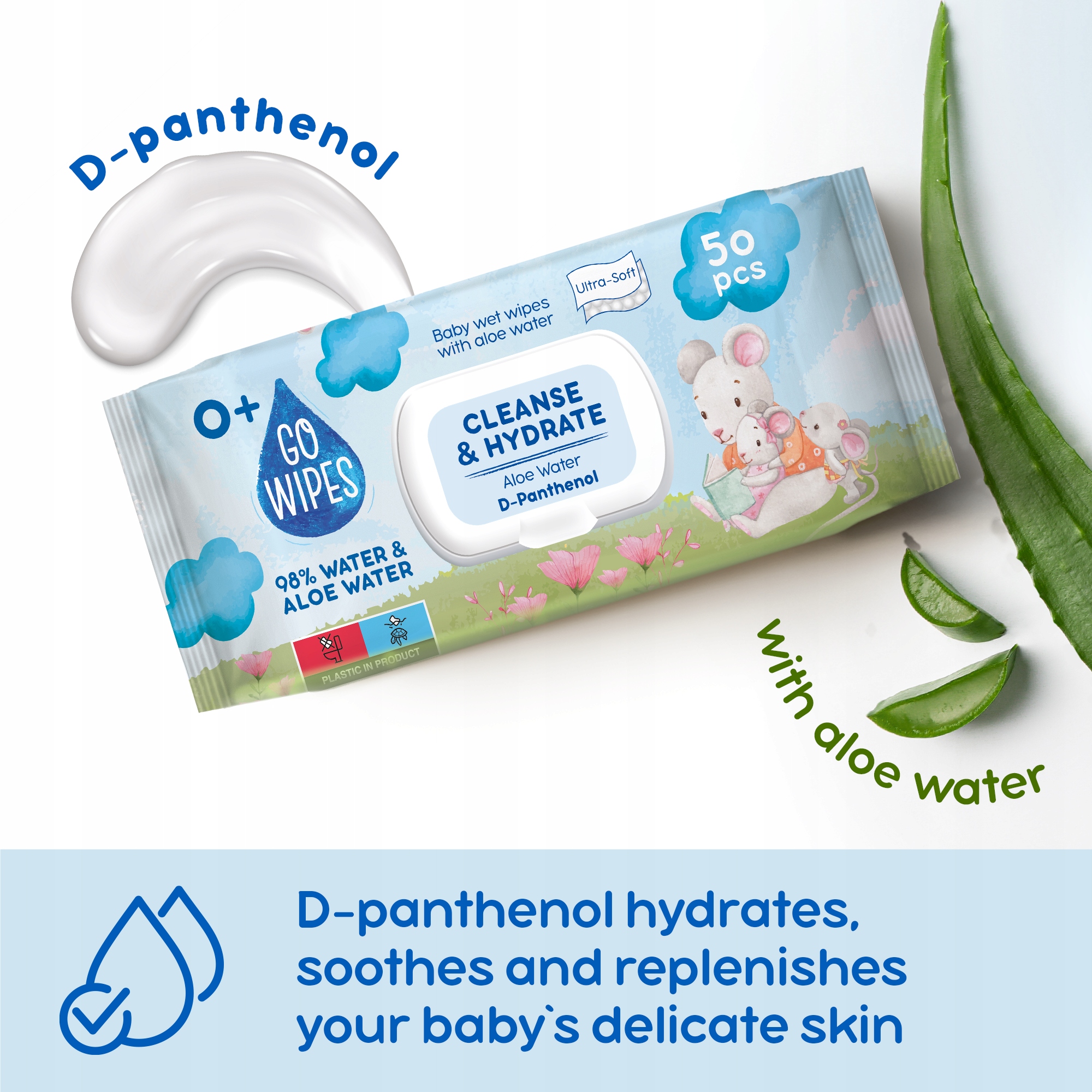 GoWipes Серветки вологі дитячі Aloe Water & D-Panthenol Flip Top Sensitive 50 шт.