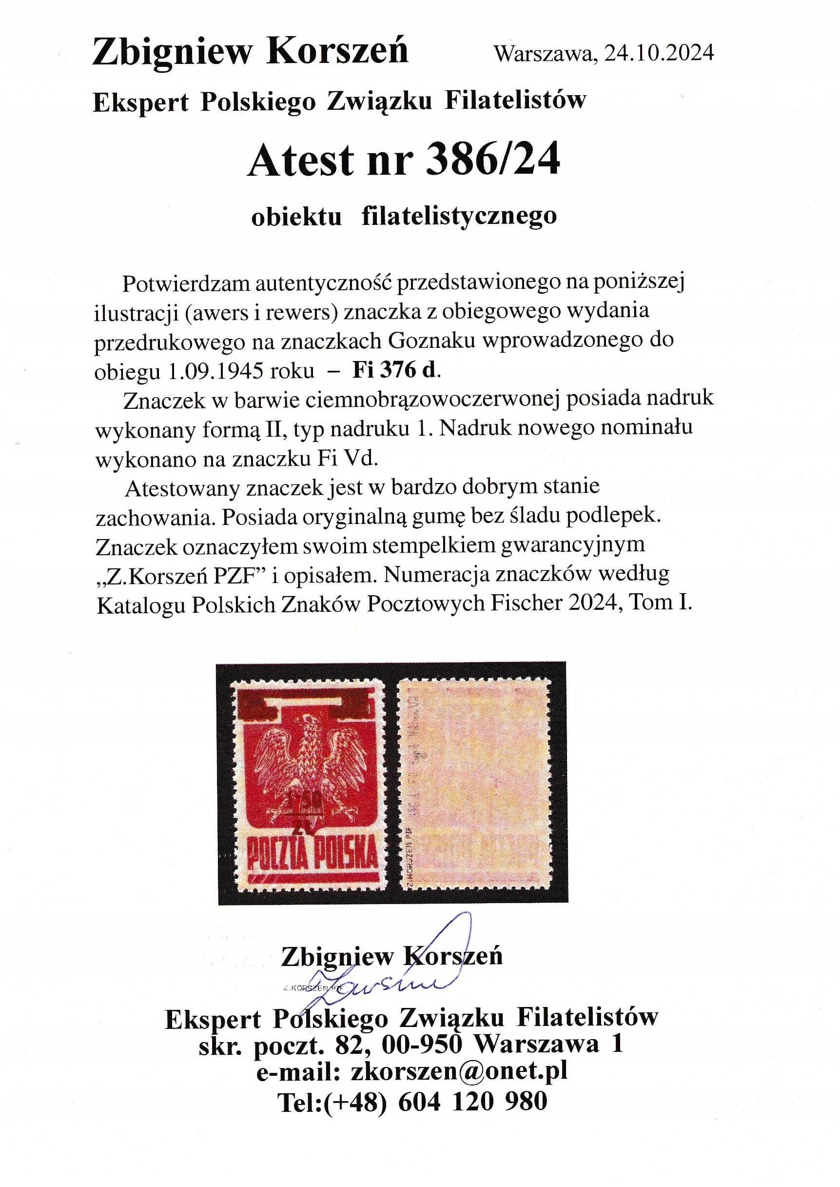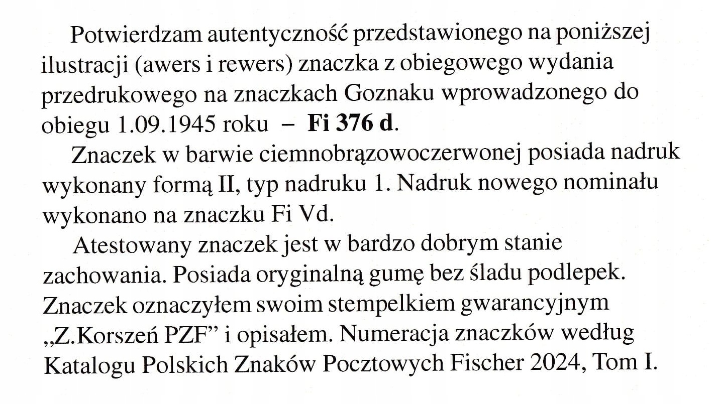 Goznak vd fi 376 d ** темно -коричнева форма II тип 1 схвалення Z. korszeń