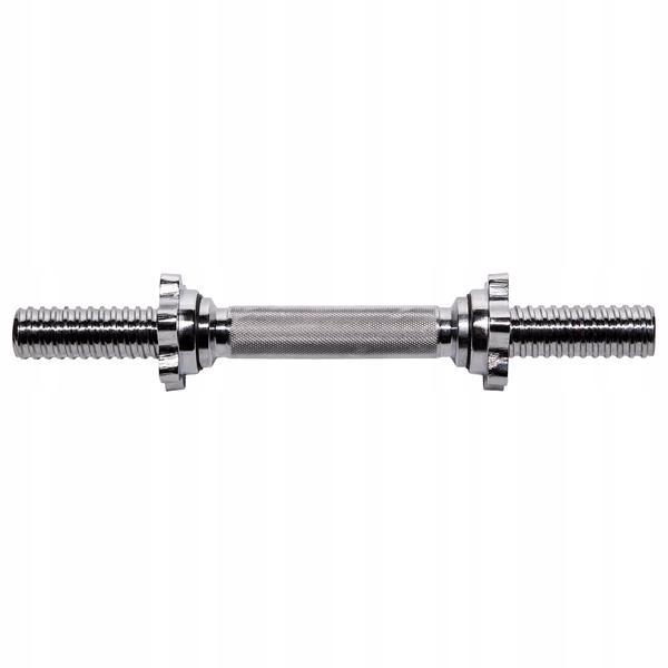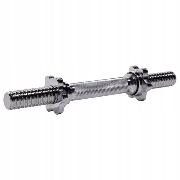 Горловина пряма - 35 см з затискачами-зірочками. Для забезпечення надійного та зручного захоплення рукоятка грифа ретельно рифлена. У комплект входить два гвинтових затискача. Фіксатори цього типу гарантують стабільне положення ваги на перекладині під час виконання вправ. Гайки мають гумові ущільнювачі з внутрішньої сторони для запобігання ослабленню вантажу. Частина планки має різьблення, що дозволяє швидко і безпечно розмістити вантаж. Гриф виготовлений із міцного сталевого бруска, який був загартований. Діаметр штанги 30 міліметрів забезпечує високу міцність і комфорт занять. Процес хромування, який використовується на шиї, гарантує збереження зовнішнього вигляду протягом дуже тривалого періоду використання та є найкращим захистом від іржі.