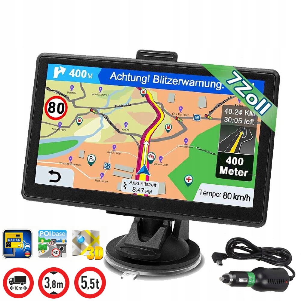 1. Цей GPS-навігатор оснащений 7-дюймовим екраном TFT з роздільною здатністю 800 х 480 пікселів.