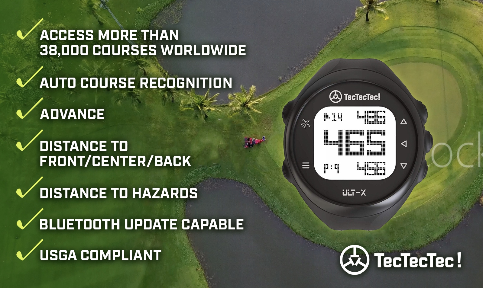 УСЕ, ЩО ВАМ ПОТРІБНО; Вимірює відстань до передньої, задньої та центральної частини грина. Точність до плюс-мінус один ярд. Враховуються відстані до небезпек. Виміряйте відстань ваших пострілів. Автоматична прогресія лунки під час гри в гольф. Доступ до інформації про понад 38 000 курсів у всьому світі. І годинник, який показує час!