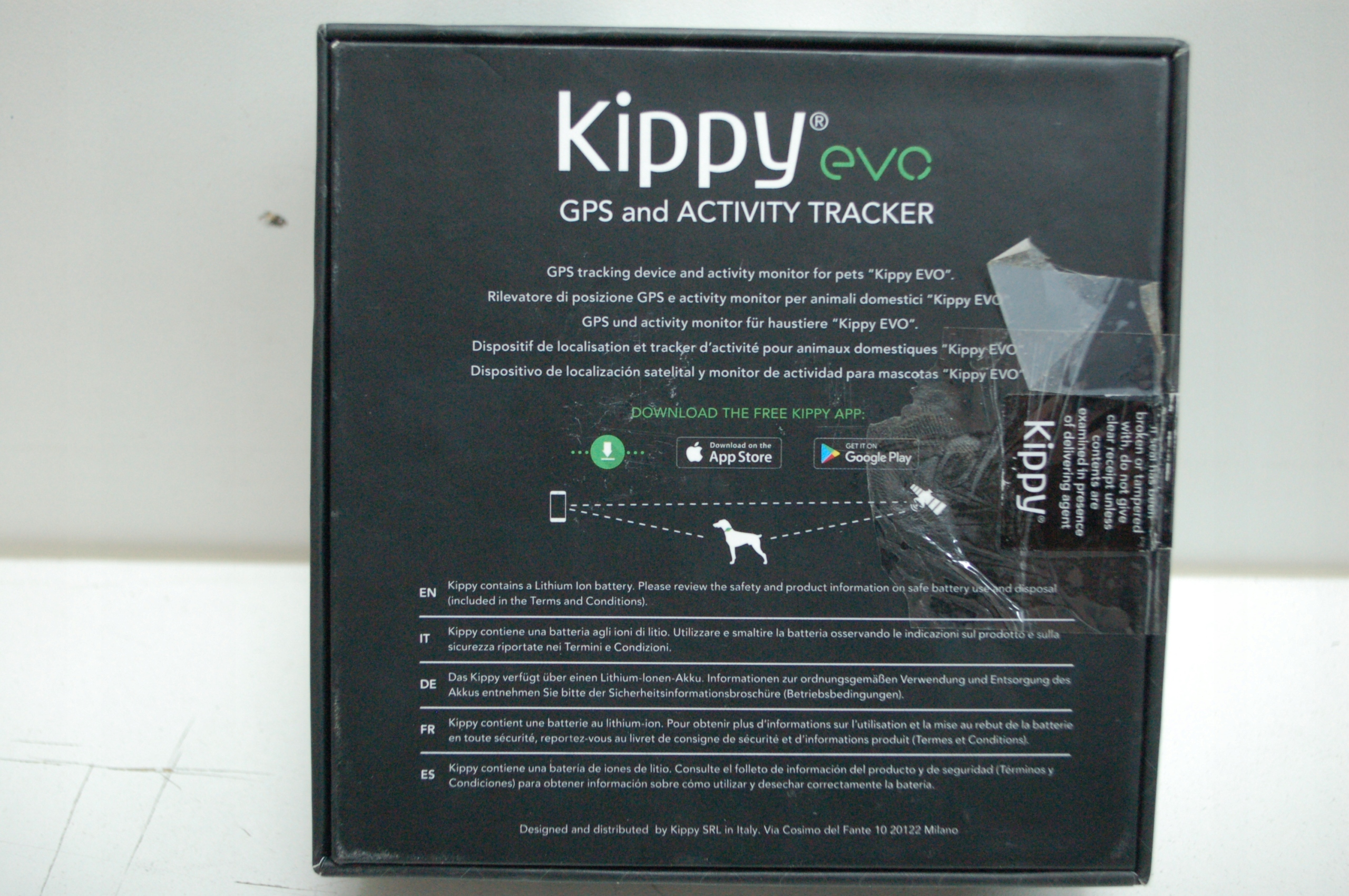 Розроблено та виготовлено в Італії, GPS-нашийник, Kippy EVO також має довговічну батарею(до 7 днів із хорошим сигналом і позицією кожні 2 години) та світлодіодний ліхтарик,