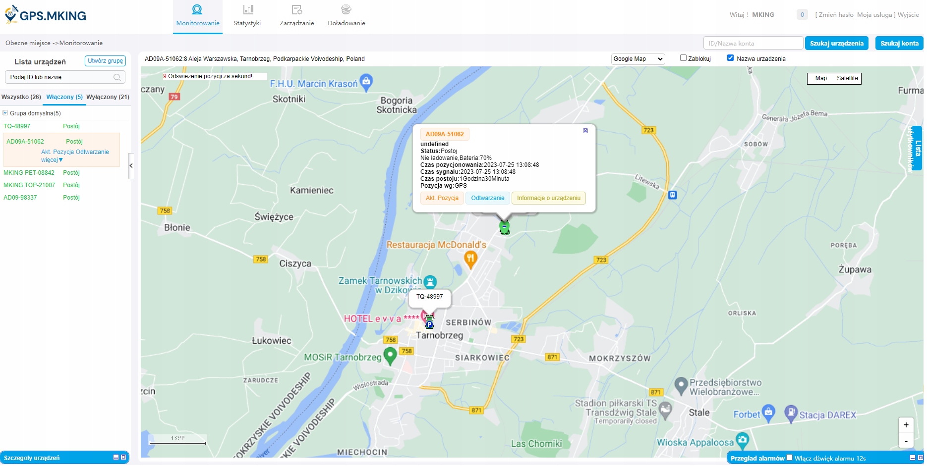 - Власна оригінальна програма для телефонів iOS/Android: GPS.MKING польською мовою