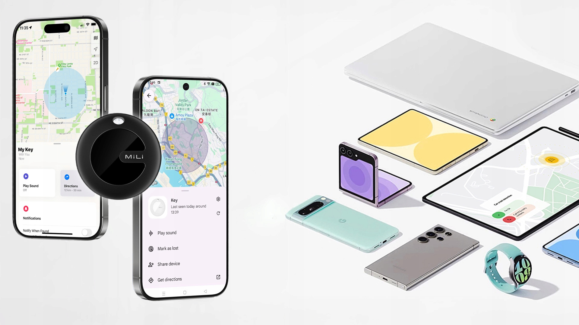 Локатор MiLi MiTag Duo повністю сумісний як з iOS, так і з Android. Однак зверніть увагу, що пристрій можна з’єднати лише з одним телефоном одночасно. Наприклад, можна спочатку підключити локатор до iPhone і користуватися функціями програми «Знайти мене». Потім, після від’єднання пристрою від облікового запису Apple і скидання його налаштувань, локатор можна буде передати іншому користувачеві, який з’єднає його зі смартфоном Android і керуватиме пристроєм через програму «Google Location Center». Таким чином, користувач має повну свободу у виборі платформи, з якою він буде використовувати пристрій. Щоб об’єднати трекер з іншим пристроєм, спочатку від’єднайте трекер від програми на поточному пристрої та скиньте його налаштування.