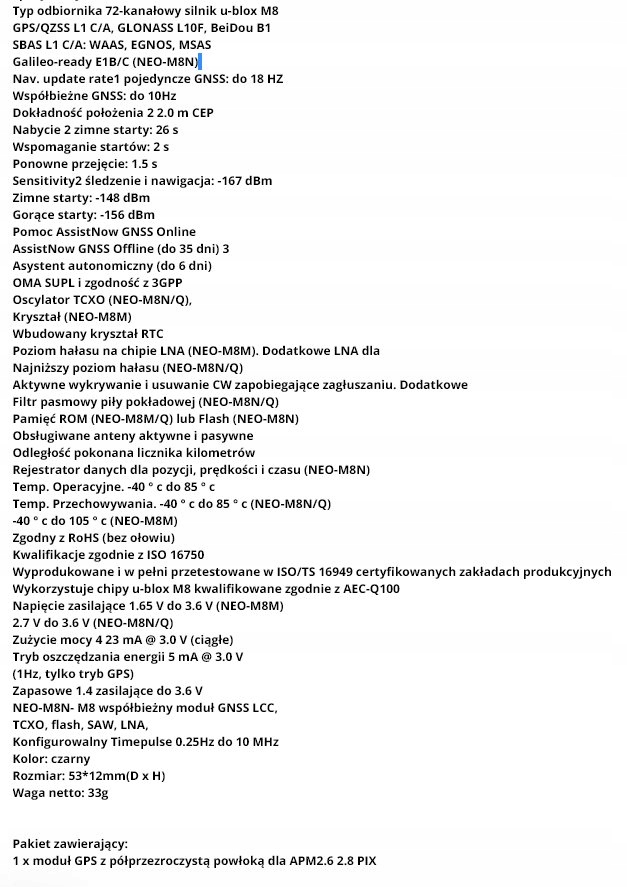 Оплачивая «GPS модуль Ublox-8M з антенною щоглою APM2.8 ArduPilot», вы можете быть уверены, что данное изделие из каталога «Контроллеры полета» будет доставлено из Польши и проверено на целостность. В цене товара, указанной на сайте, учтена доставка из Польши. Внимание!!! Товары для Евросоюза, согласно законодательству стран Евросоюза, могут отличаться упаковкой или наполнением.
