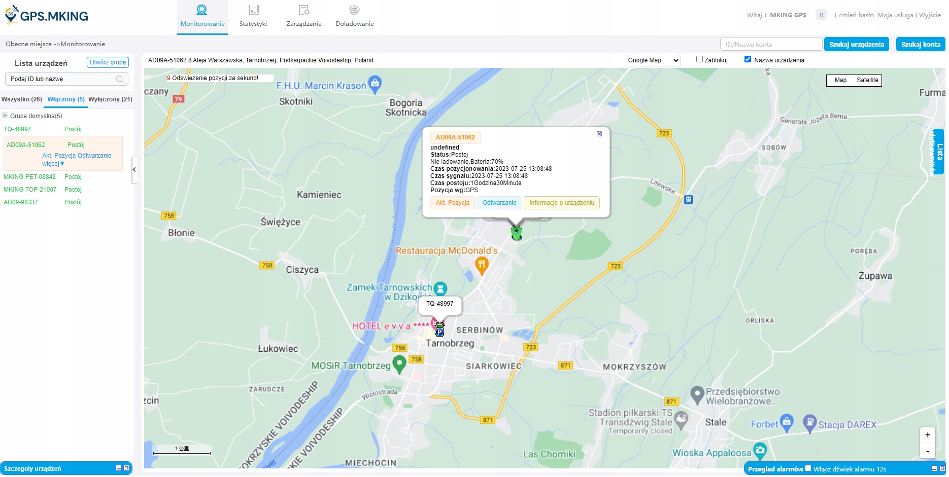 - Власна фірмова програма для телефонів iOS/Android: GPS.MKING польською мовою
