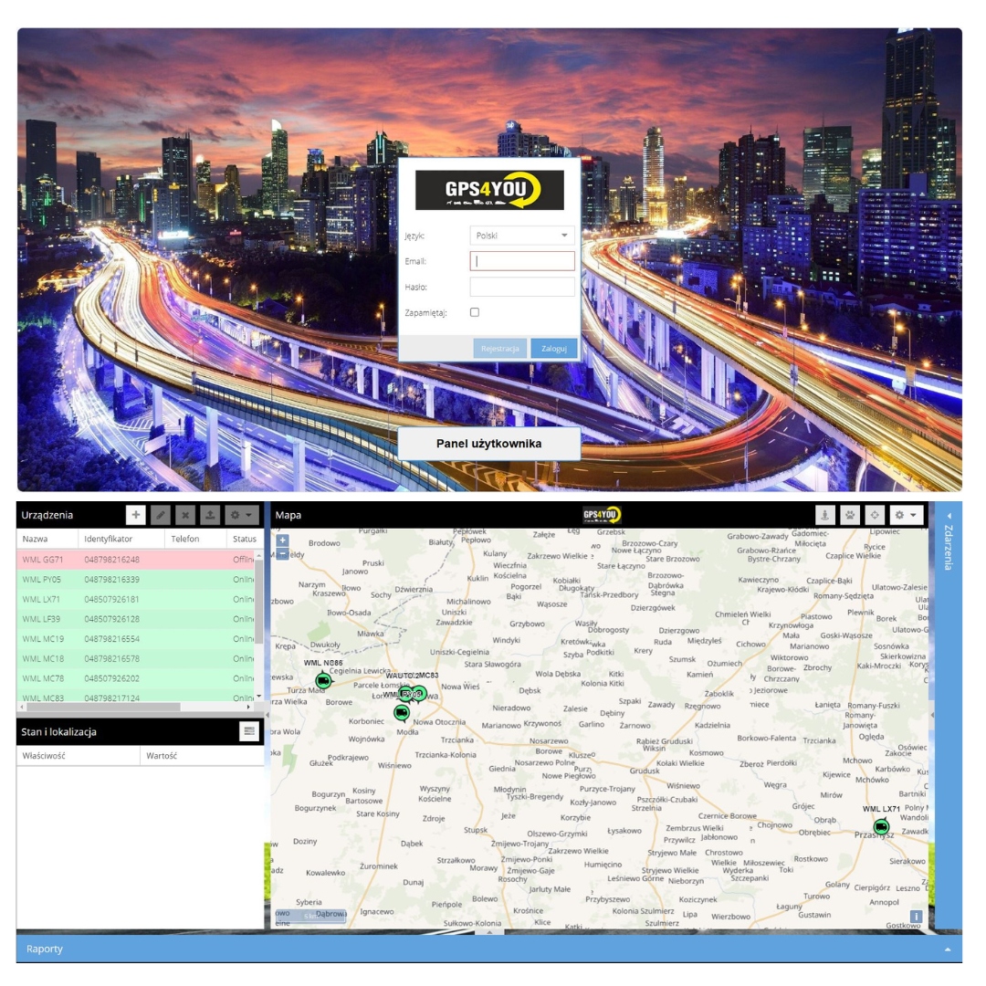 Якщо у вас є більше локаторів GPS4YOU, ми можемо об’єднати їх усі в одну карту, щоб легко та прозоро контролювати всі транспортні засоби. Додаткова послуга створення облікового запису FLOTA становить 49 злотих