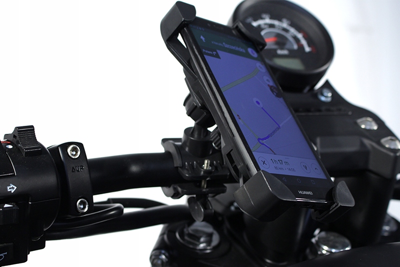 Кріплення на кермо з фіксатором - відмінне рішення для кожного мотоцикліста! Відстань між плечима можна регулювати від 57x114 мм до 91x183 мм, тож будь-який пристрій, що входить у цей діапазон, буде стабільним під час їзди! Глибина дужок, які охоплюють кути телефону, становить 16 мм, тож вам не доведеться діставати його з футляра, щоб помістити телефон у тримач!*