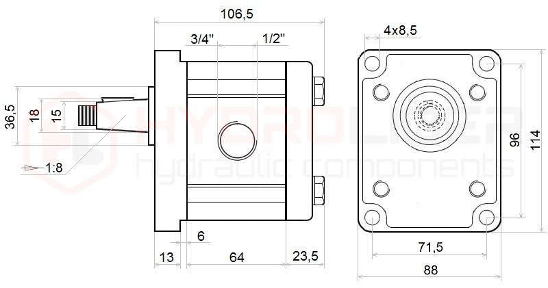 GR2 НАСОС ПРАВА ШЕСТЕРНЯ 12см3 18Л ГІДРОЛІДЕР