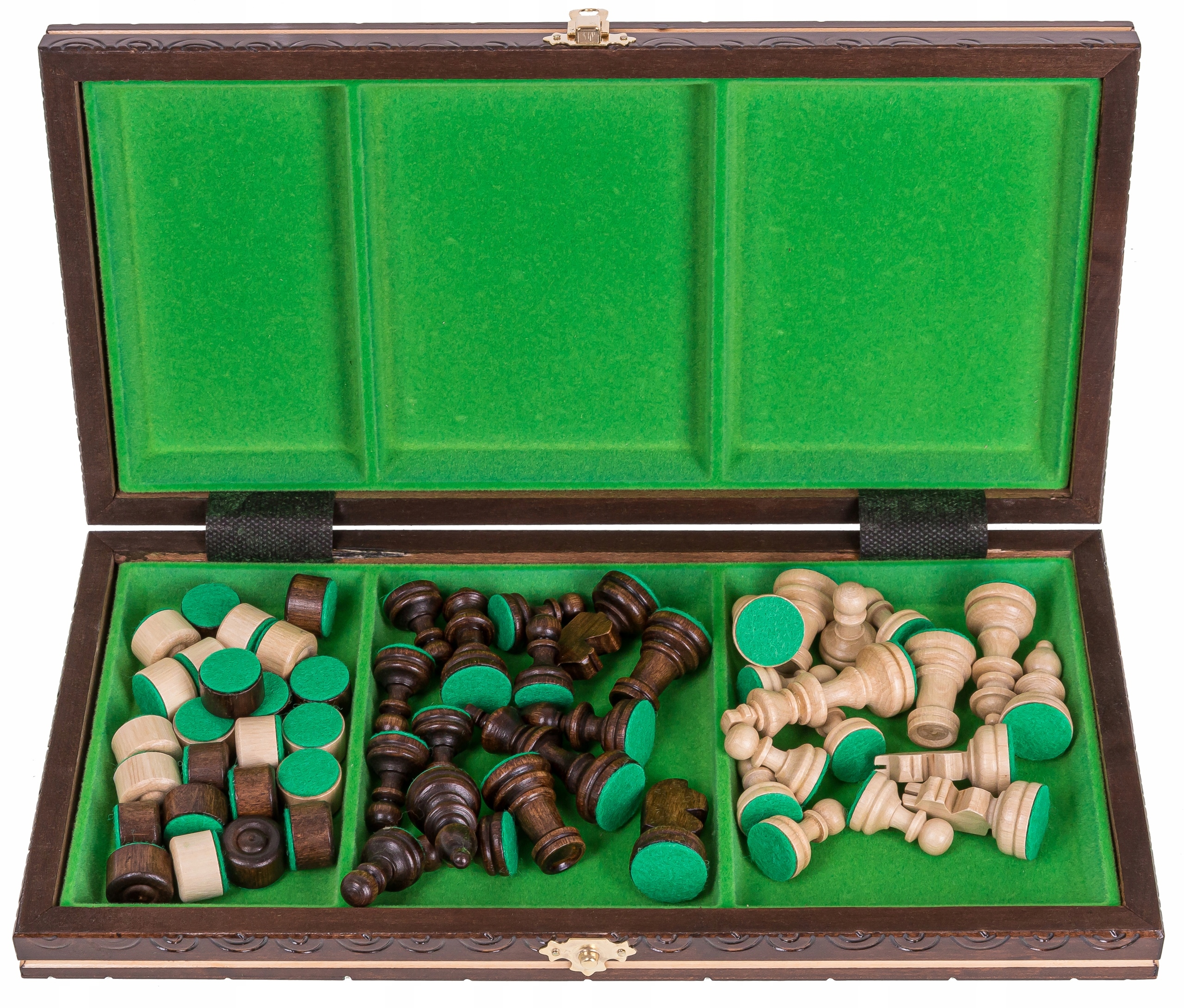 - Шахові фігури - з граба, лаковані, обклеєні повстю,