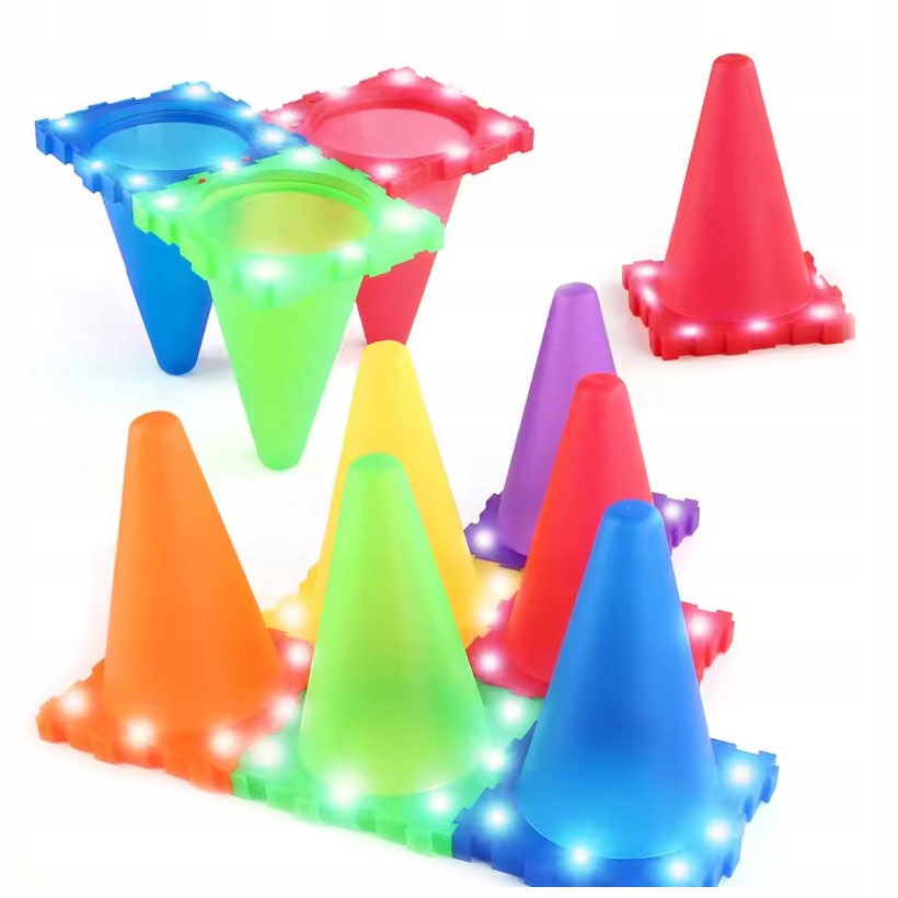 Набір аркадних ігор зі світлими ефектами - ідеальна пропозиція для активної розваги вдома, сад або дитячий садок. Гра захоплення передбачає кидання кульок, мішків або ободів у барвисті шишки та дірки, які додатково освітлені барвистими світлодіодами.