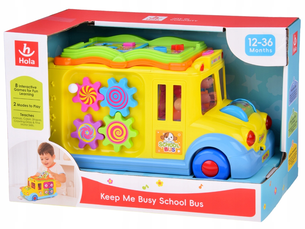 Інтерактивний шкільний автобус може їздити сам, змінюючи напрямок щоразу, коли натрапляє на перешкоду, але ним також може керувати дитина. Під час руху грає весела музика і блимають фари.