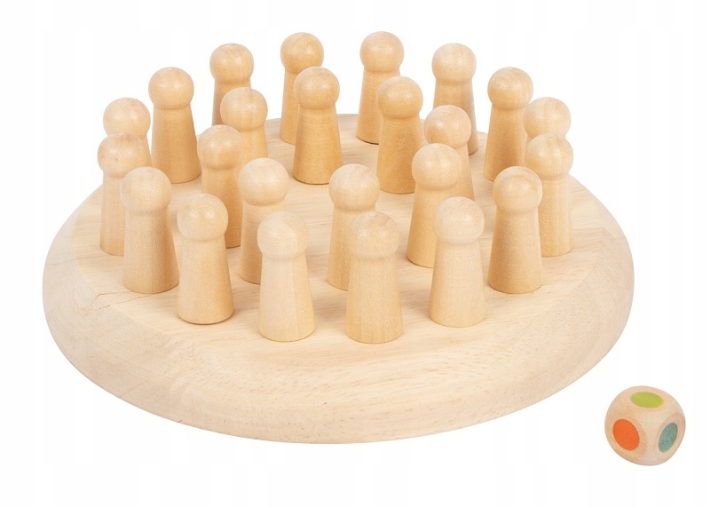 Цього разу ми представляємо пам’ять у вигляді круглої дошки з різнокольоровими пішаками. Перед початком гри покладіть усі фігури в отвори на дошці, щоб кольори були непомітними. Потім гравці по черзі кидають кубики, намагаючись знайти пари кольорів. За один хід гравець може відкрити 2 або 4 фігури одного кольору. Той, хто вгадав пару або четвірку, кидає знову, поки не помилиться. Якщо підібрано різні кольори, гравець повертає фігури на те саме місце. Гра продовжується до тих пір, поки не будуть вгадані всі пари. Перемагає гравець з більшою кількістю фігур (допускається нічия).