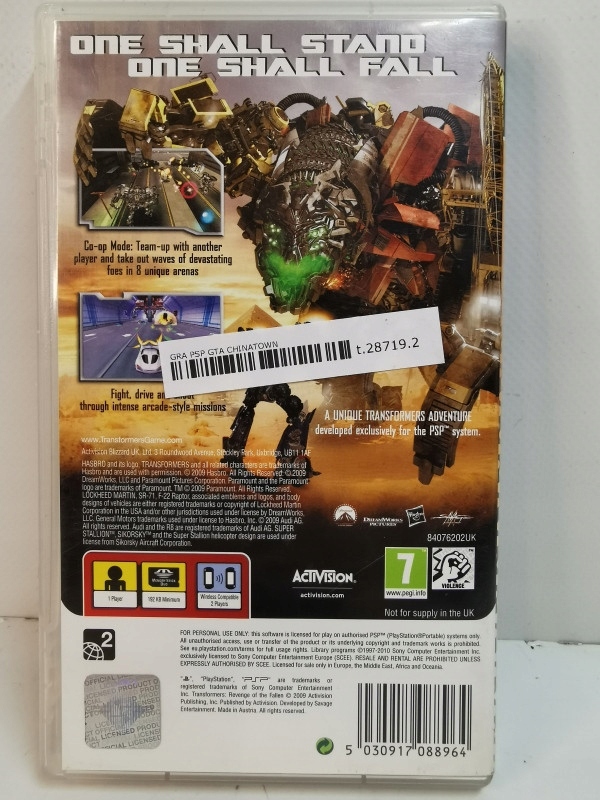 Просматривая «Гра для PSP Trans Formers» данный товар из каталога «Sony PSP», вы можете получить дополнительную скидку 4%, если произведете 100% предоплату. Размер скидки вы можете увидеть сразу при оформлении заказа на сайте. Внимание!!! Скидка распространяется только при заказе через сайт.