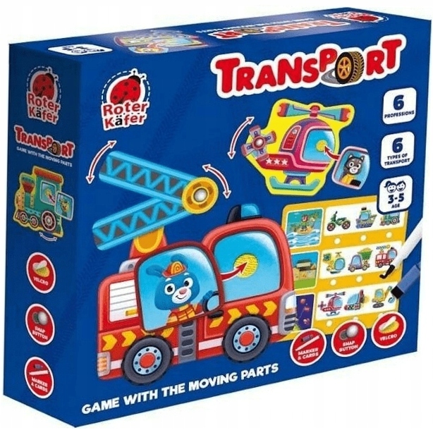 Які є види транспорту? Чим вони відрізняються? Для чого вони? Познайомтеся з автомобілями та їх водіями! У набір входять ігрові дошки з рухомими елементами та додатковими деталями. Закріпіть ці елементи липучками. Приклад: капітан Лев стоїть за штурвалом корабля. Прикріпіть частину з його зображенням за допомогою липучок. Перемістіть якір, прикріплений до корпусу. Також виконуйте завдання на картках зі спеціальним маркером, що стирається. Гра розвиває уяву, логічне мислення, пам'ять і моторику. У набір входить: 6 дощок, 6 елементів, маркер з губкою, 6 карток із завданнями, інструкція.