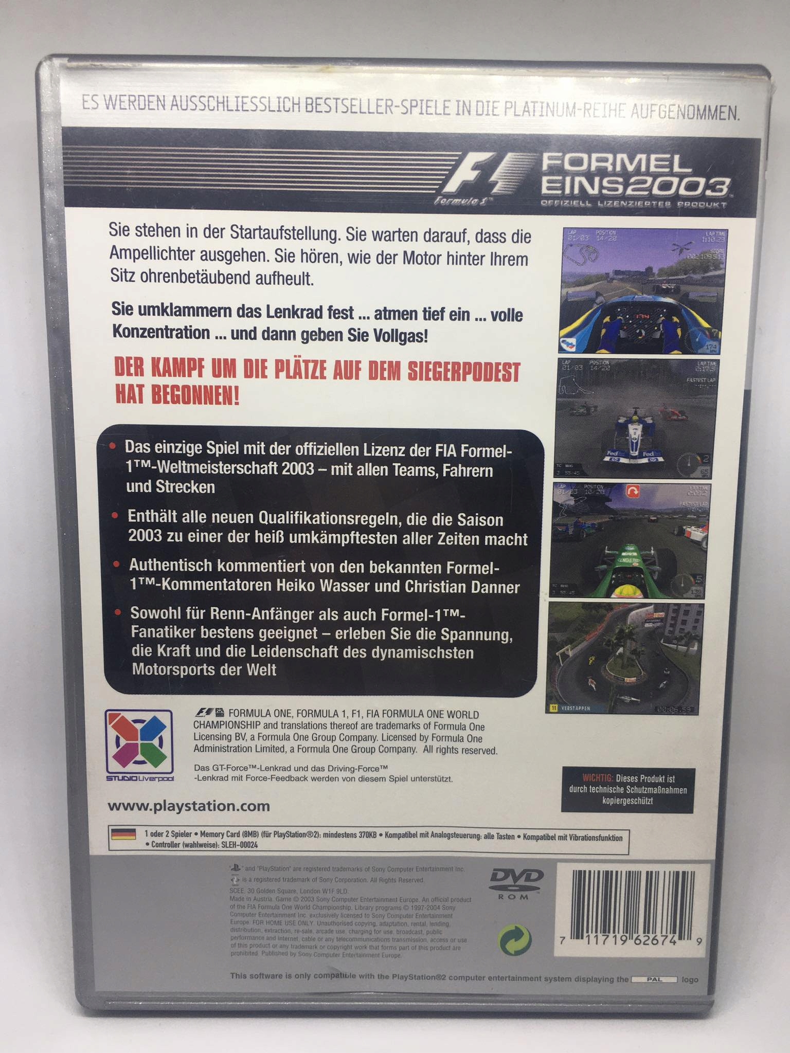 Formula One 2003 — це ще одна частина серії гоночних ігор, виданих Sony. Цього разу, вперше в історії, творці отримали повну ліцензію FOA, завдяки якій ми можемо виконувати роль точно відтворених пілотів сезону 2003 року та брати участь у змаганнях під прапором всесвітньо відомих гоночних команд.