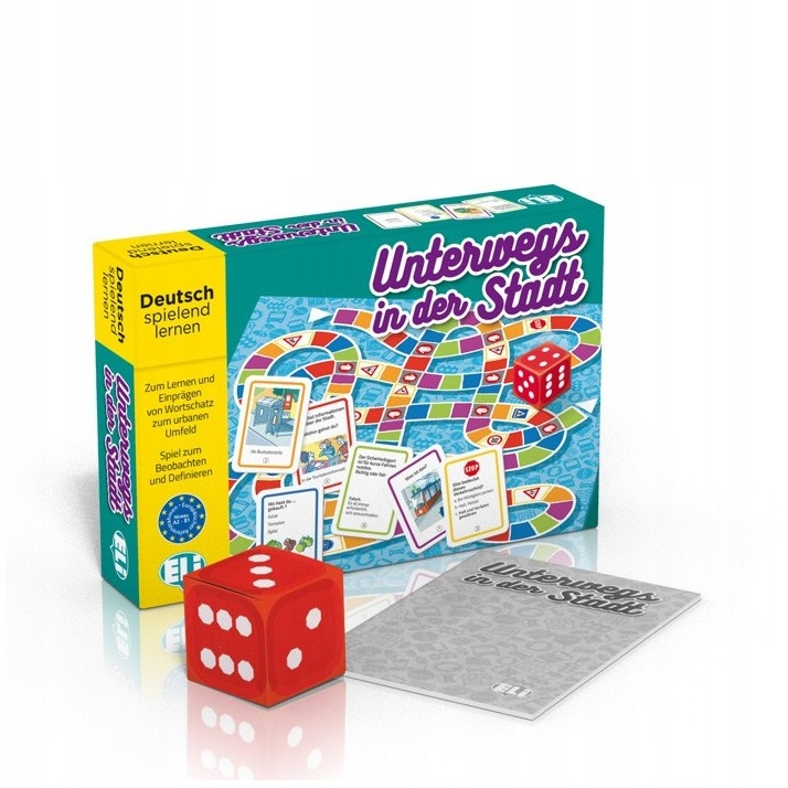 Unterwegs in der Stadt – це настільна мовна гра, яка дозволяє гравцям перевірити свої загальні знання німецької мови та вивчити словниковий запас і вирази, пов’язані з міським життям, інфраструктурою, міським транспортом і безпекою на дорогах. p >