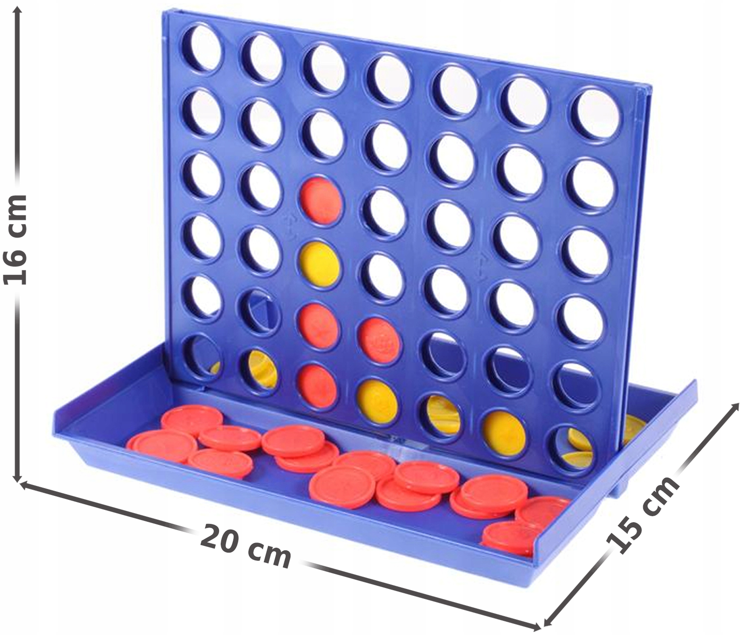 Гра триває, доки один гравець не покладе чотири жетони в ряд (вертикально, горизонтально або по діагоналі). Розміщуємо жетони на спеціальній дошці: 6х7 рядів для жетонів.