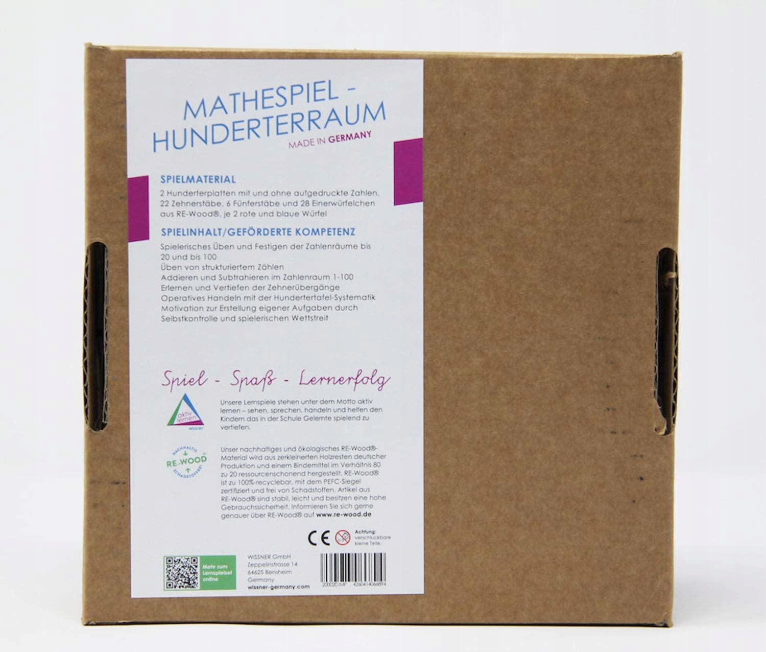 - Складається з 2 сотень пластин із надрукованими цифрами та без них, 22 паличок із 10 частин, 6 паличок із 5 частин та 28 одинарних кубиків, а також 2 червоних і синіх кубиків.