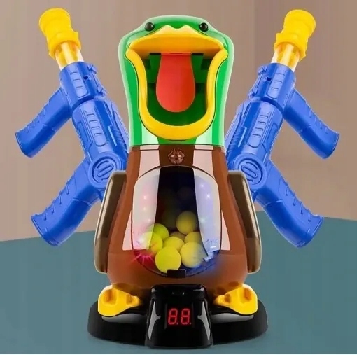Ваша дитина буде любити грати з нашою барвистою качкою! Ця гра навчить точності та координації рук і очей розважати вас годинами. Влучіть у ціль пінопластовою кулькою, і качка не лише крякатиме , але й зароблятиме очки!