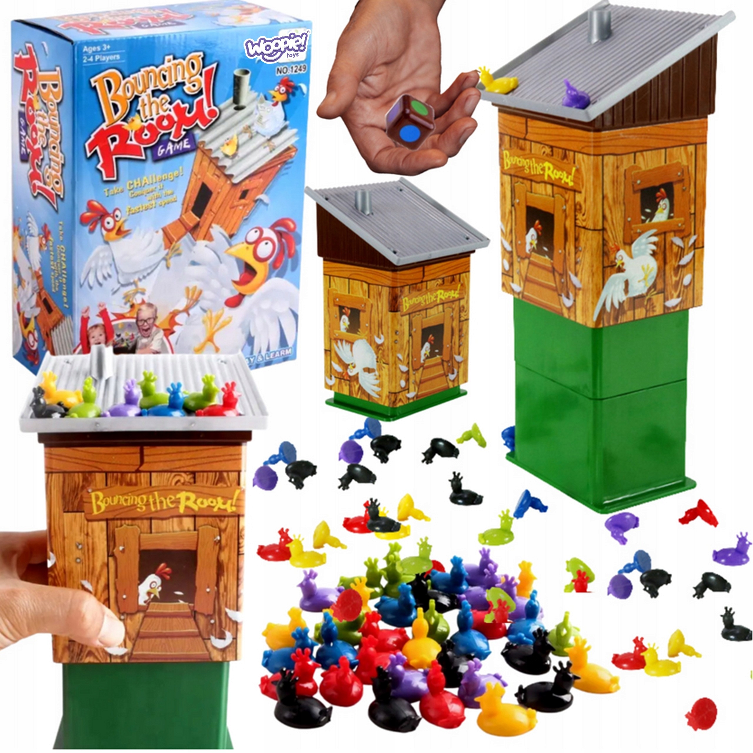 Exploding Hen House від бренду Woopie — це захоплююча та весела аркадна гра, яка подарує багато сміху як дітям, так і дорослим! Завдання гравців - без активації механізму помістити курей на дах курника, який може в будь-який момент «вибухнути», збивши всі фігурки! Гра вчить спритності, зосередженості та терпіння та є чудовою формою спільної розваги.